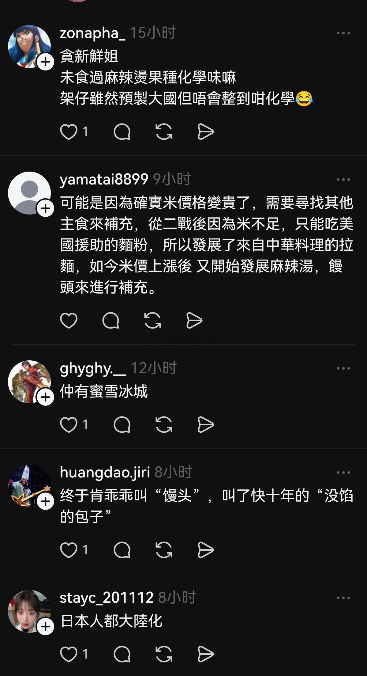 港人又在外网破防“为什么日本人先沉迷麻辣烫,现在又爱上馒头蘸炼乳?”评论区有人吐