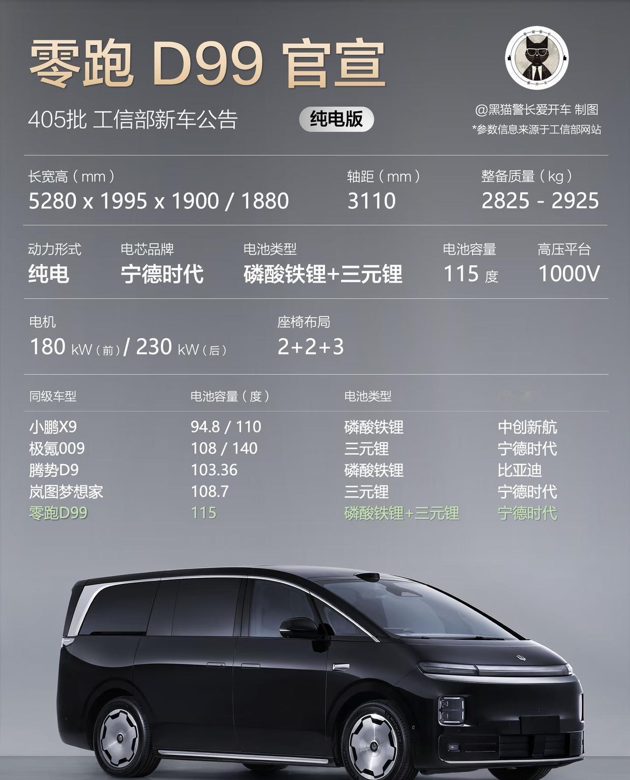 零跑首款MPV D99的申报图出来了!尺寸够大,轴距3110mm,有纯电和增程两