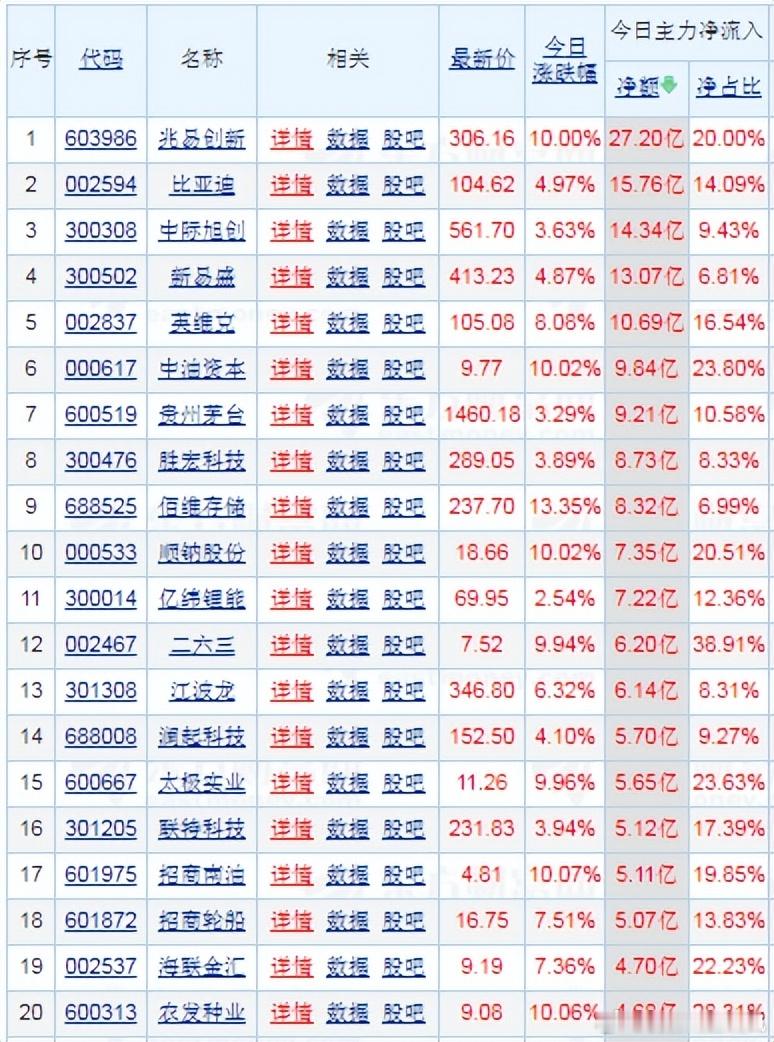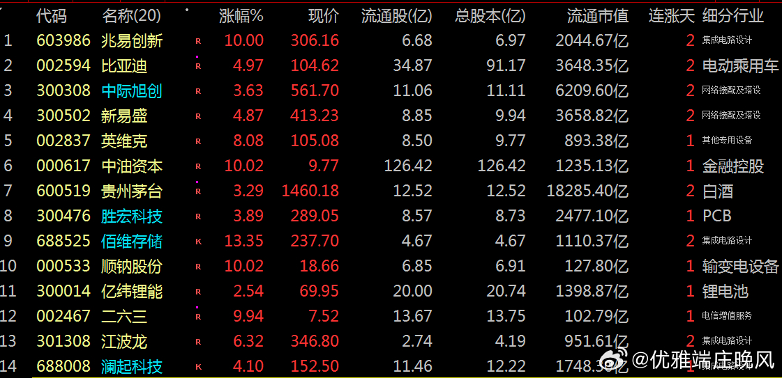 复盘潜龙:浮出水面。今日市场:结构上涨。其中兆易创新、中际旭创、新易盛等科技股获得主力资金大幅流入。整体来看:市场呈现:指数分化个股普涨格局。资金聚焦:符合国家战略方向、具备技术壁垒和业绩增长潜力的科技龙头。今日透视:亦或梳理资金流向哪些龙头股: