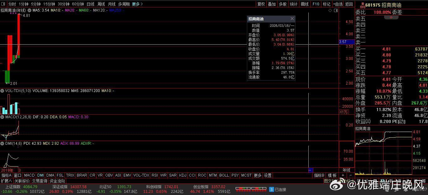收盘价: 4.81元。涨跌幅: 10.07%。净流入: 5.11亿