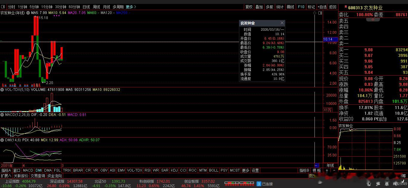 收盘价: 9.08元。涨跌幅:10.06%。净流入: 4.68亿