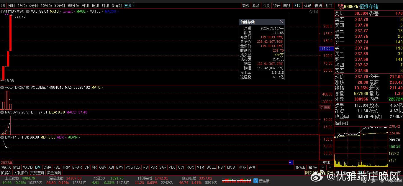 收盘价: 237.70元。涨跌幅 13.35%:。净流入: 8.32亿