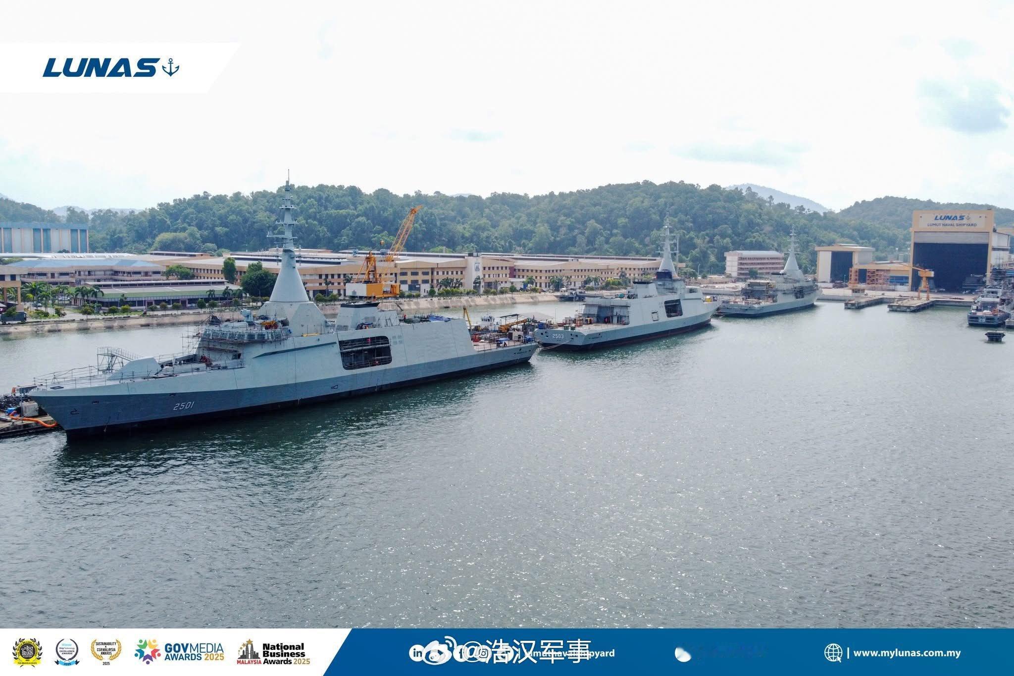 全球武器装备盘点每天认识一件兵器烽火问鼎计划 2026 年 3 月 16 日,马来西亚海军在建“马哈拉贾·莱拉”级濒海战斗舰“马哈拉贾·莱拉”号(舷号 2501)、“拉贾·穆达·纳拉”号(舷号 2502)、“沙里夫·马绍尔”号(舷号 2503)和“马特·萨莱赫”号(舷号 2504)在马来西亚龙目。