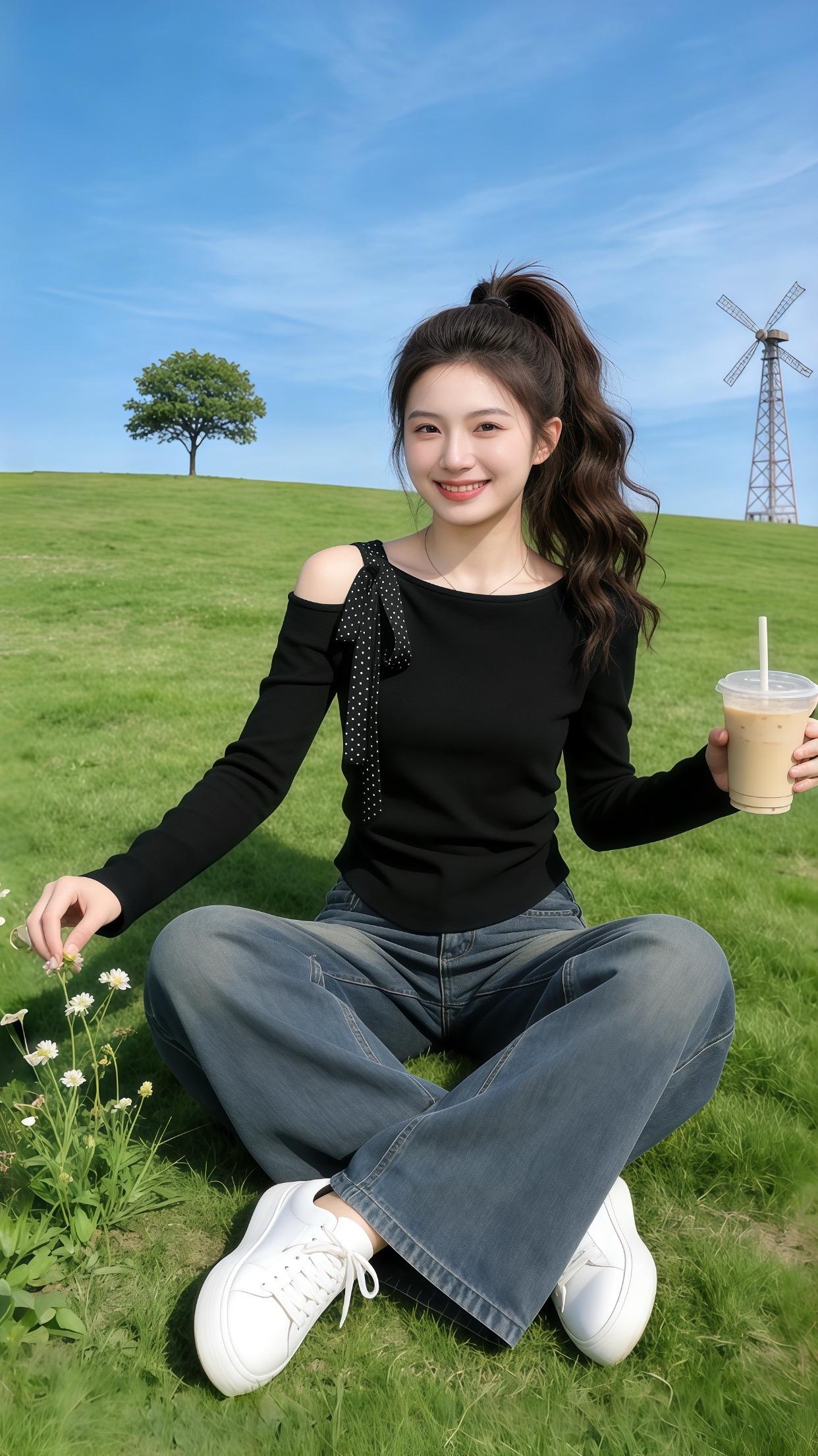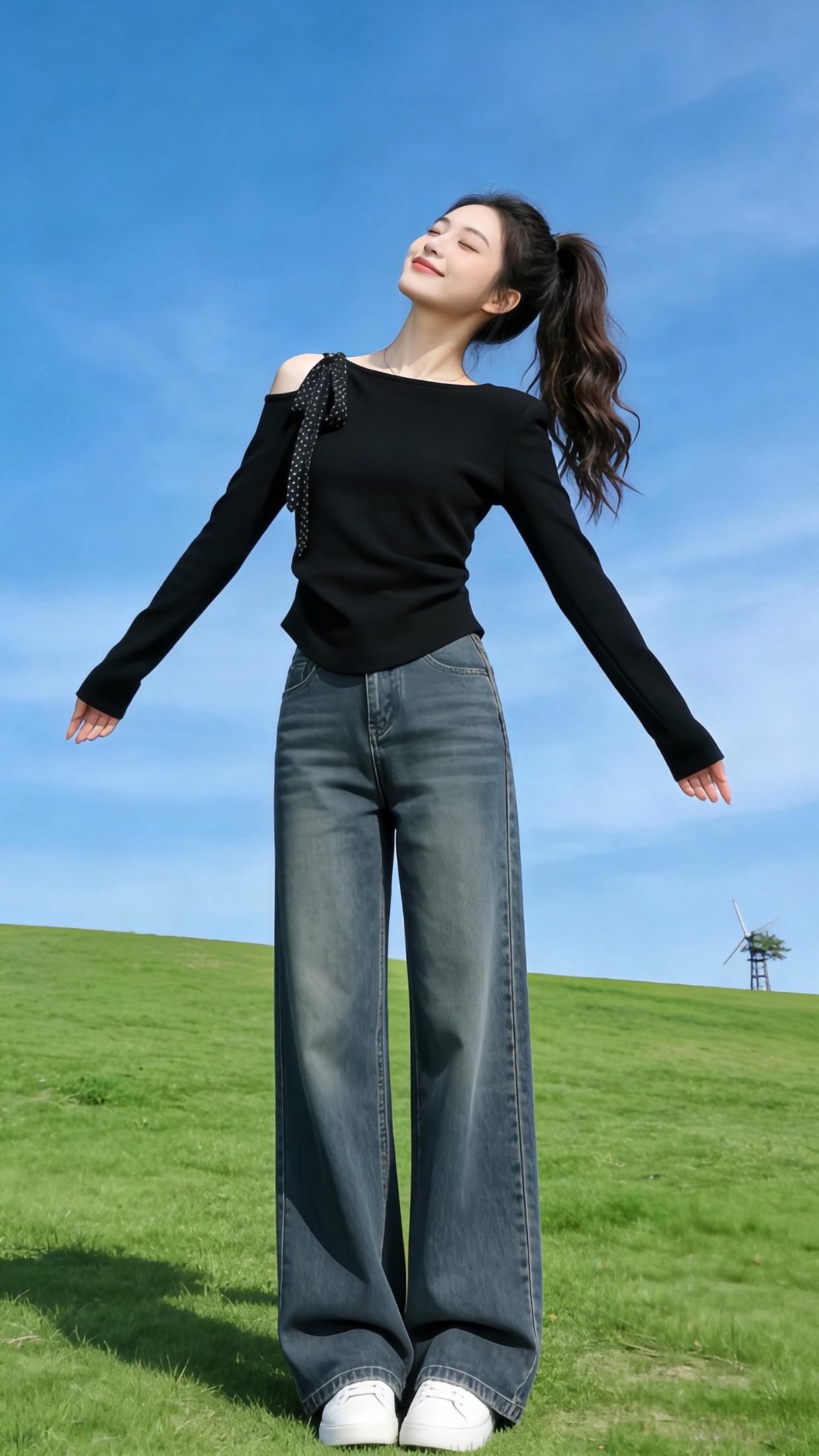 阳光下的牛仔少女,自然清新的夏日穿搭