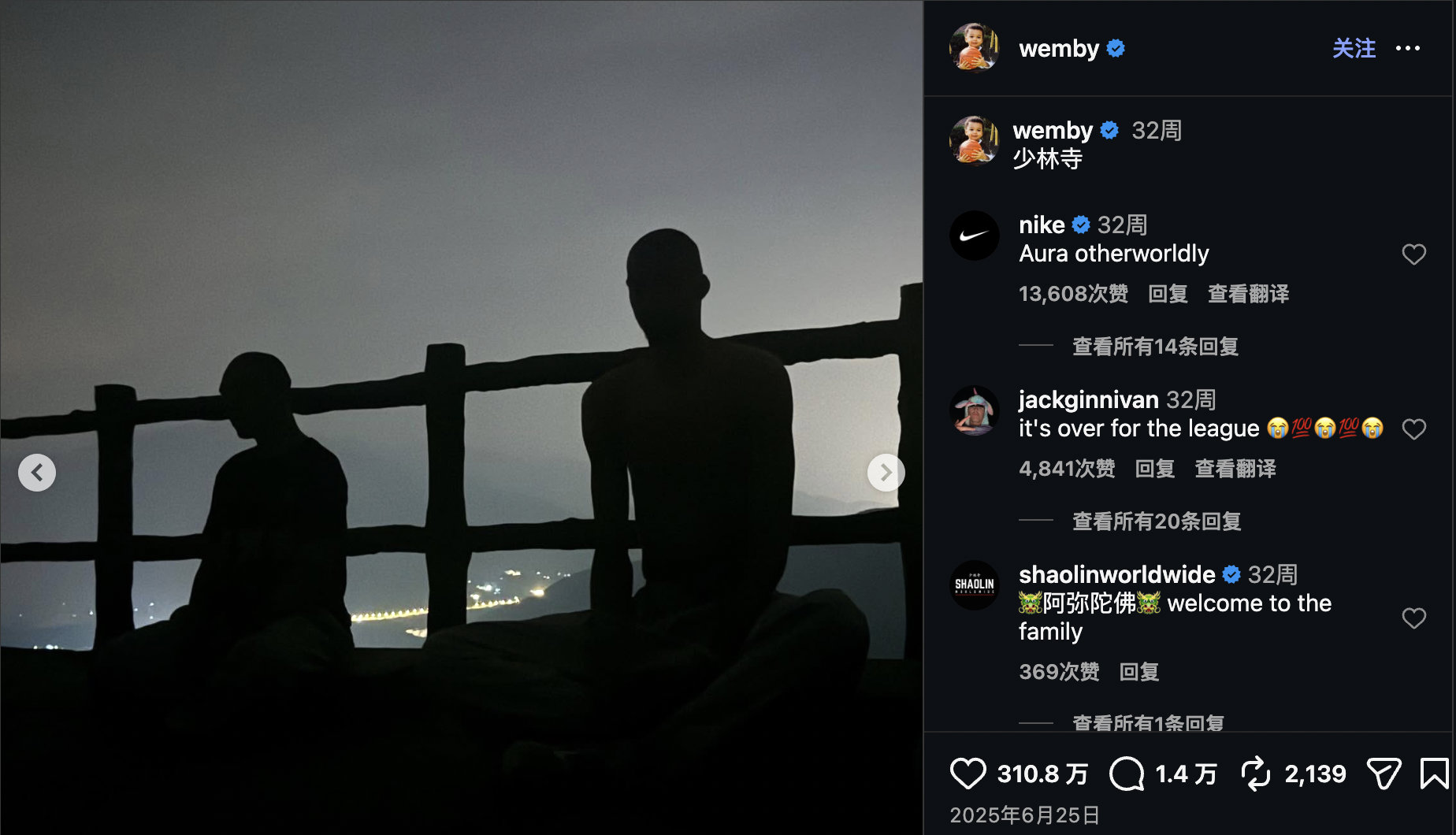 冷杉record撰文,通过负责文班亚马修行的延安师傅口述,挖掘出了去年夏天文班在少林寺的更多经历。