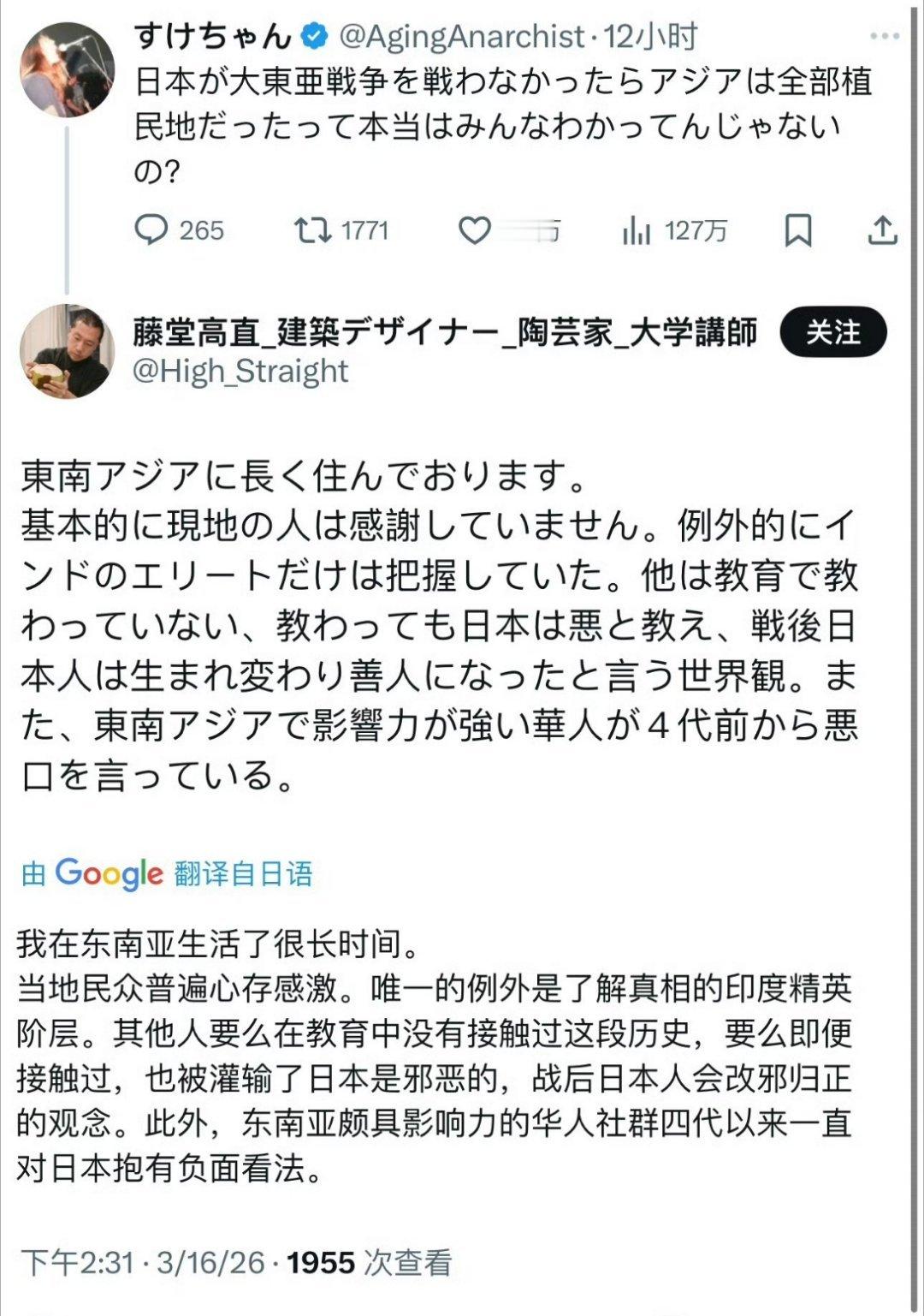 北京时间3月16日,日本社会学家山口周在社交平台写道:“中国真是高明啊。面对特朗