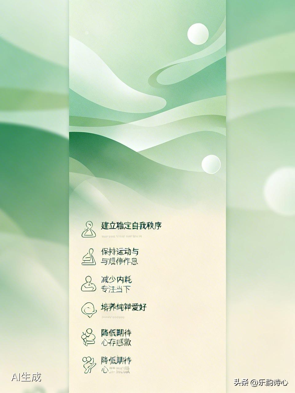 减少内耗,接受无法改变的过去,专注于当下的行动。培养一两项纯粹的爱好,在专注中获取多巴胺。降低期待,对人际关系保持随缘,对生活细节心存感激,停止与他人的横向攀比。