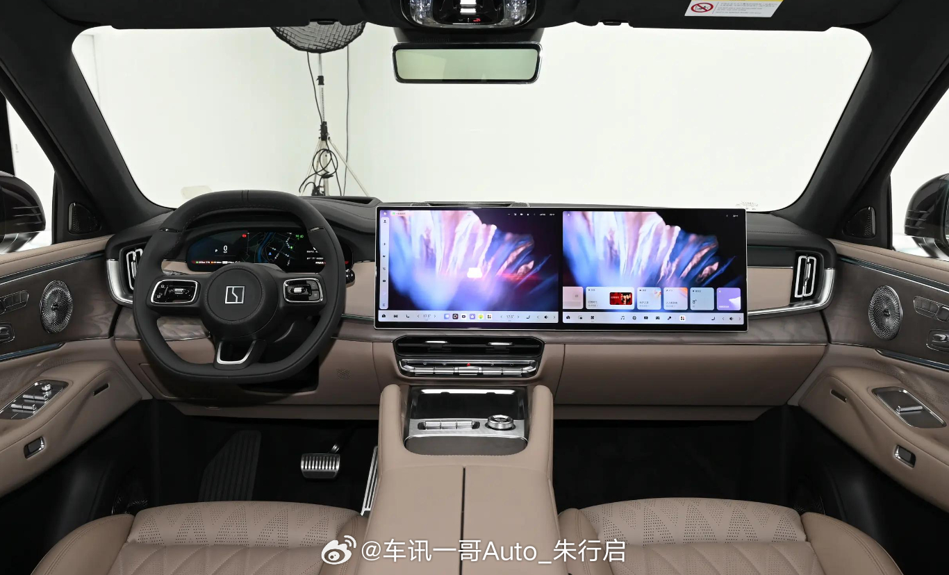 新款极氪8X采用中控屏和副驾屏组成的双联屏设计,驾驶员侧具有液晶仪表盘和抬头显示系统,车内具有四种配色可选,包括赤影红、纯黑、白黑和棕黑。