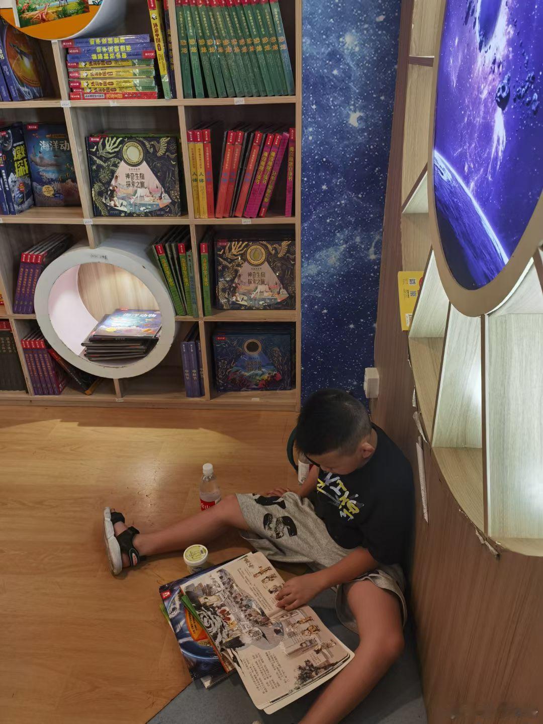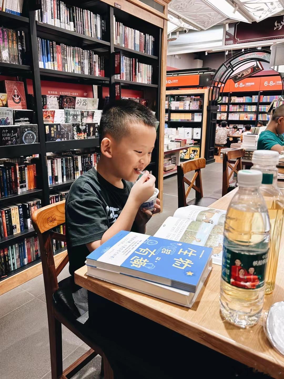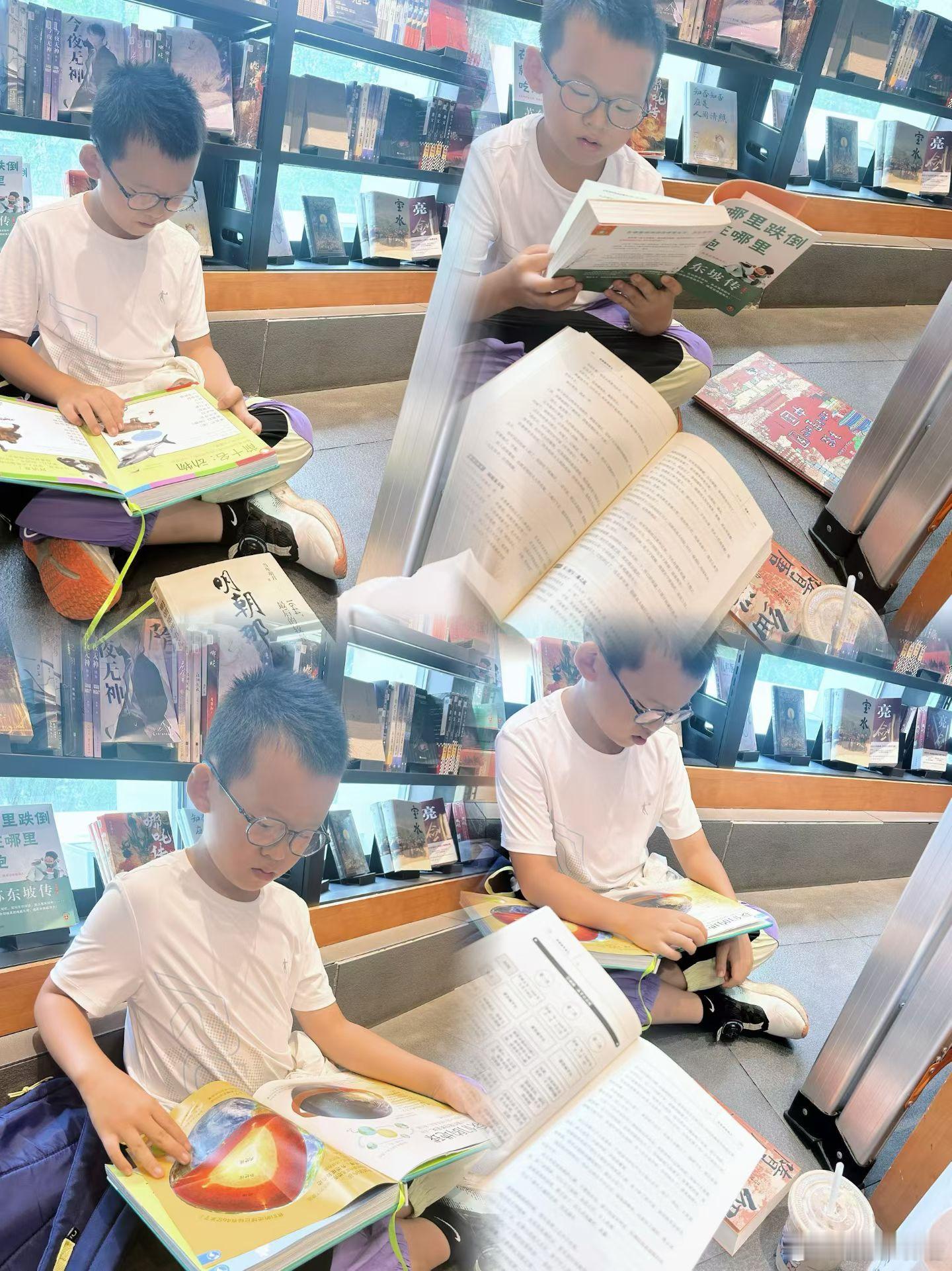 这些年带他去过不少地方看书:钟书阁、文轩、西西弗、北京图书大厦、Page One、洛阳新华书店去看了两个小时……