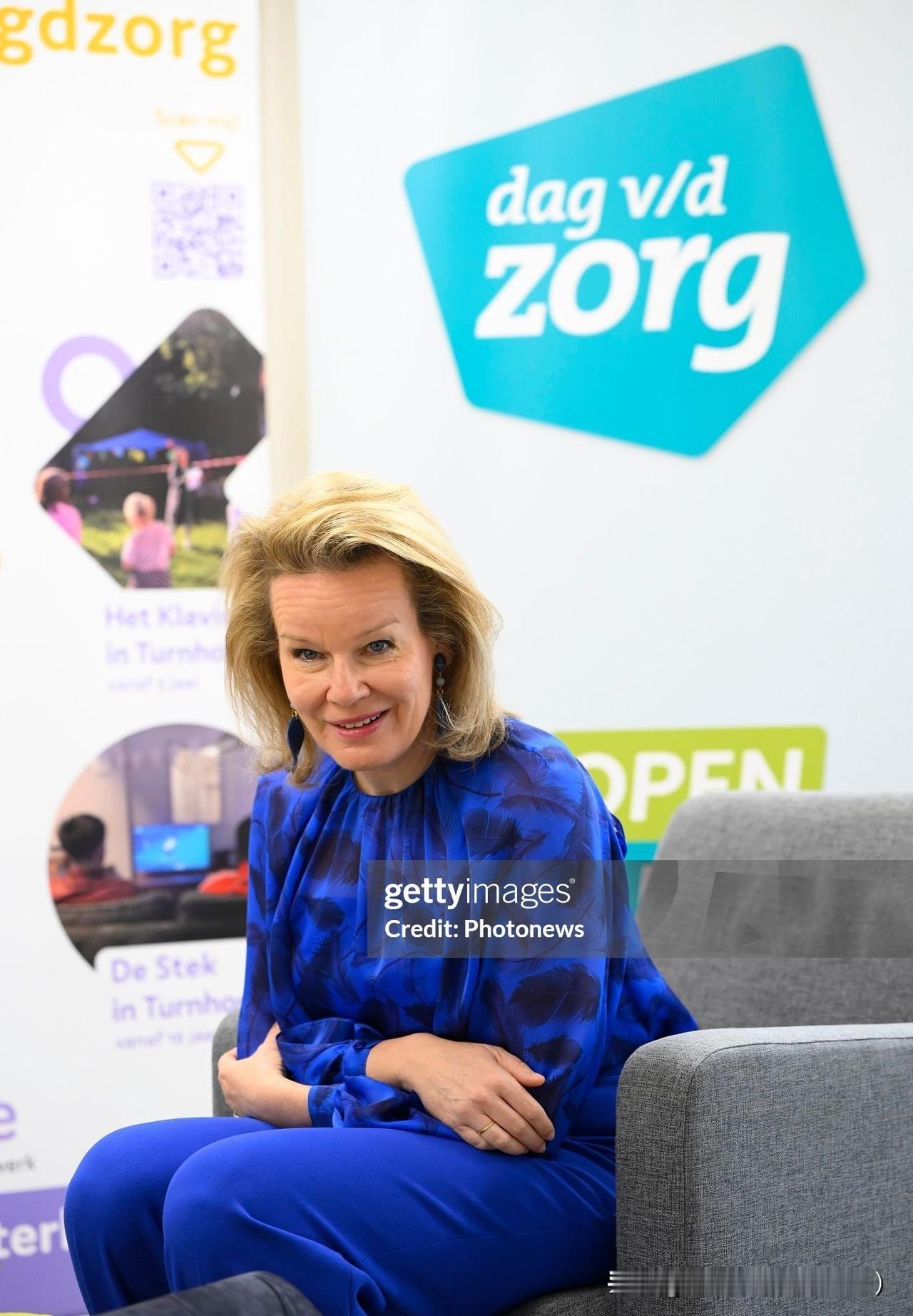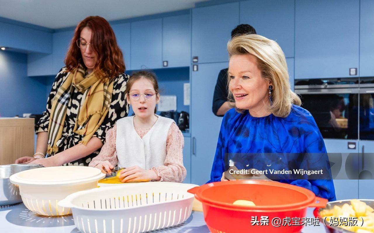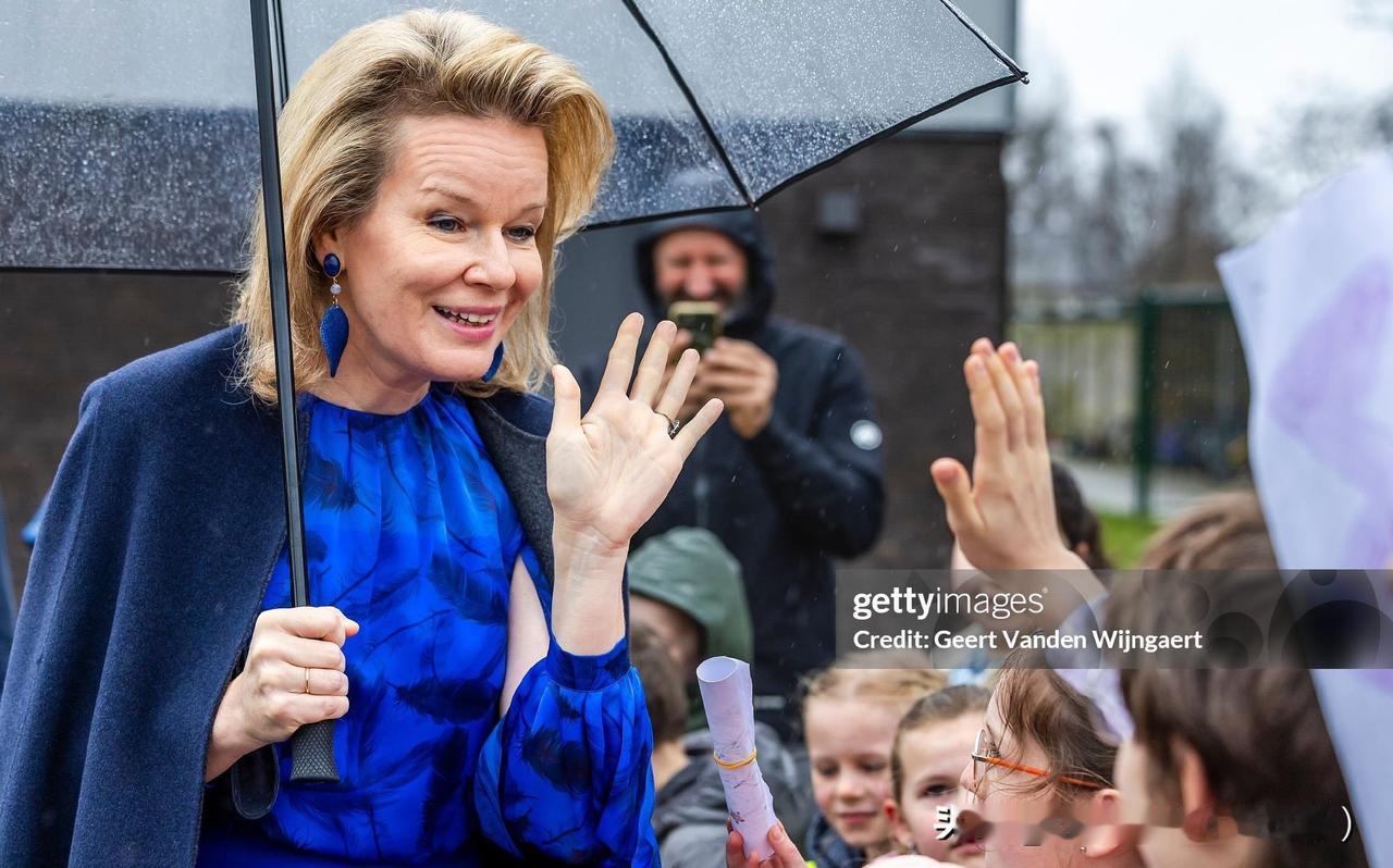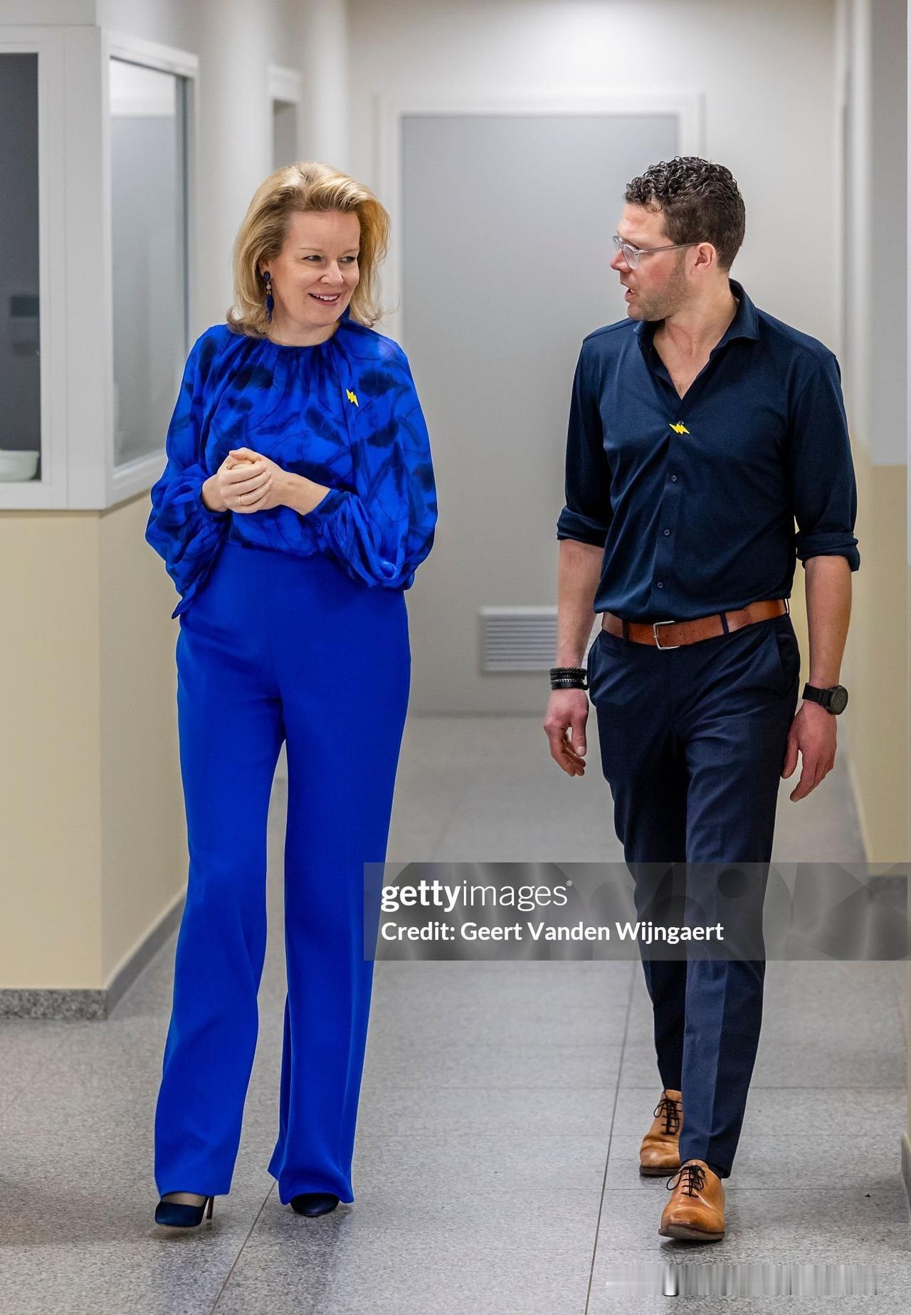 马蒂尔德王后探望非营利组织下的青少年关爱部门,宝蓝色套装来自钟爱品牌Natan!