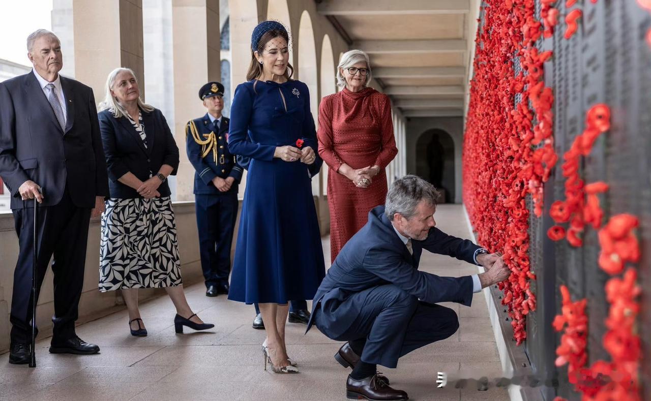 国王夫妇国事访问澳大利亚的第三天!玛丽王后新入手的宝蓝色连衣裙非常修身时尚,搭配