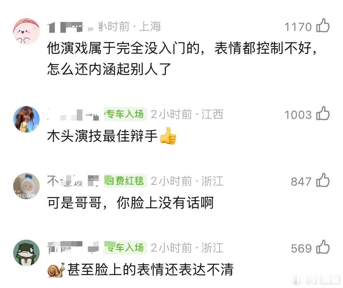 张凌赫说受不了那种把每句话都写在脸上那种表演方式,郫县的人说他脸上没有话~