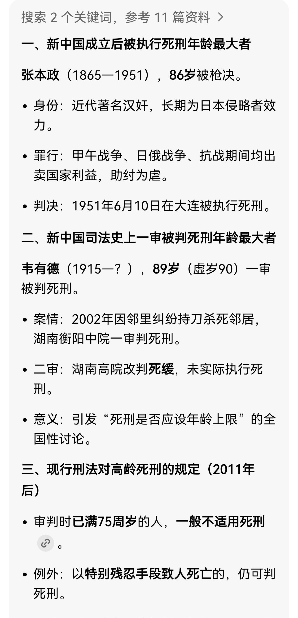 中国最年长的死刑犯?答案好像和检索到的资料不一致。