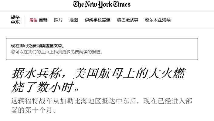 “福特”号起火后,600名美军水兵睡地板 美国对自身战争损失的信息管制,终于瞒不住了。 16日,《纽约时报》发布了一则独家报道,称不久前美军“福特”号航母的洗衣房起火事件所造成的损失,远没有美国中央司令部说得那么轻描淡写。福特号起火 根据《纽约时报》的说法,美军水兵们实际花了30多个小时才将大火完全扑灭,除了美国中央司令部通报的两名水兵因“非致命伤”接受治疗外,还有数十名水兵吸入了浓烟。火灾过后,超过600名水手失去了床铺,只能睡在地板和桌子上。更令人尴尬的是,航母的厕所损坏问题至今没解决,导致美军水兵每天需要排队上厕所。 与此同时,近期《华盛顿邮报》也曝出,美军在本轮美伊战争中的实际受伤人数也远不止中央司令部此前通报的数字,而是已经超过了200人。 这一系列内部信息的曝光凸显出,美军试图掩盖战场窘境的努力正面临越来越大的压力。自美伊战争爆发以来,美国对自身损失采取了高强度的信息管制措施,试图营造“只要不承认就是没有”的假象。 但《纽约时报》和《华盛顿邮报》的爆料表明,特朗普政府的信息管制正在失效,美军的伤亡以及“福特”号水兵对超长期加班的不满,已经不是单靠封锁消息就能压制住的了。