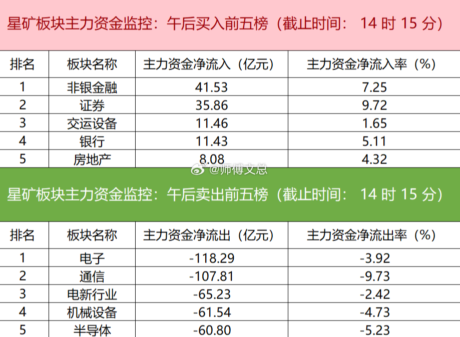 【主力资金监控:电子板块净流出超118亿】星矿数据显示,今日主力资金净流入非银金融、证券、交运设备等板块,净流出电子、通信、电新行业等板块,其中电子板块净流出超118亿元。个股方面,协鑫集成资金净买入20.02亿元位居首位,山子高科、东方财富、华电新能主力资金净流入居前;天孚通信遭净卖出超18亿元位居首位,华工科技、兆易创新、阳光电源主力资金净流出额居前。财经理财 今日看盘