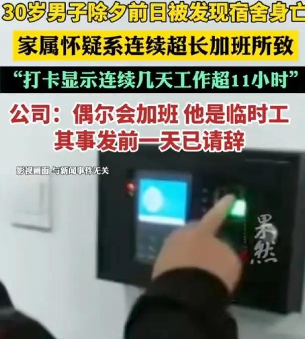 江苏南京,30岁男子陈某外出打工,竟在宿舍突然没了气息。家属翻他手机才发现,他连续四天工作都超11小时,怀疑是加班累倒致死,找公司要赔偿。可公司却百般推诿,先说只赔2万,又改口说他是临聘人员,事发前一天已请辞。网友直呼:这说辞也太巧了! 没了,30岁的陈某,在异乡的宿舍里,永远没了气息。 南京30岁男子宿舍猝死:四天加班超44小时,公司只赔2万,一句“已辞职”就想撇清? 没有征兆,没有遗言,前一天还在高强度劳作,第二天就变成了一具冰冷的身体。家人千里迢迢赶来,看到的不是活生生的儿子,而是停在宿舍、再也不会睁眼的年轻人。他们颤抖着手翻开陈某的手机,一段让所有人破防的记录,赫然出现在眼前:连续四天,每天工作都超过11小时。 天还没亮就上岗,披星戴月才回宿舍,别人下班他在加班,别人休息他在硬扛。30岁,正是上有老、下可能还没小、全家指着他撑着的年纪。他不是不想休息,是不敢停、不能停。出门打工,为的是碎银几两,为了让父母安心,为了在城市站稳脚跟。可他怎么也想不到,自己拼命赚的血汗钱,最后竟成了催命符。 家属悲痛欲绝,谁能接受,好好的人外出打工,短短几天就天人永隔?他们理所当然找到公司,想要一个说法、一份公道、一点对逝者的告慰。 可公司的态度,凉透了所有人的心。 一开始,轻飘飘甩出两万块,像是打发乞丐;眼看家属不接受、舆论要发酵,立刻改口:他是临聘人员,事发前一天已经请辞了。 这话一出,网友直接炸了:怎么会这么巧? 早不辞职、晚不辞职,偏偏在高强度加班、身体撑不住的前一天辞职?人还住在公司宿舍,考勤记录清清楚楚,前一天还在岗位上透支身体,转头就说“已经不是公司员工”?这不是解决问题,是拼命撇清责任;这不是解释,是往家属伤口上撒盐。 很多人看完,都想起了自己,我们谁不是这样?背着房贷车贷,顶着家人期待,在岗位上不敢病、不敢死、不敢抱怨。明明累到头晕眼花,还要咬牙撑着;明明身体发出警报,还在安慰自己“再熬一熬就好”。我们总觉得年轻就是资本,却忘了,在超负荷的加班面前,再年轻的身体,也像一根紧绷到极致的弦,一断,就是一生。 陈某的悲剧,从不是个例,那些凌晨还亮着灯的办公室、流水线上不停歇的机器、手机里永远回不完的消息、领导一句“年轻人多干点”的道德绑架……我们用健康换钱,最后可能发现,钱没赚到多少,命先没了。 更让人心寒的是,每当这类悲剧发生,总有企业第一时间想着“免责”:临时工、已离职、非工作时间、自愿加班……一套话术行云流水,仿佛一条鲜活的人命,比不上一点赔偿款。 他们忘了,法律早有规定:长期违法超时加班,与劳动者猝死存在因果关系,用人单位难逃责任;即便不在岗位,过度劳累诱发死亡,公司也不能用一句“已辞职”彻底甩锅。 他们更忘了,那个倒在宿舍的30岁男人,不是一个名字,是父母的依靠、家庭的希望,是和我们一样,想好好活着、拼命生活的普通人。 两万块,买不走一条人命;一句“已辞职”,抹不掉连续四天超11小时的加班记录。 我们愤怒,不只是为陈某,更是为每一个在底层拼命、却不被尊重、不被保护的打工人。我们不想看到,努力生活的人,最后只换来这样的结局;不想看到,用人命换来的业绩,最后只换来冷漠推诿。 生命从来不是消耗品,打工人也不是永动机。 愿每一份付出都被善待,愿每一次拼命都有归途,更愿这一次,逝者能得到公道,家属能得到安慰,所有企业都能记住:钱可以再赚,人走了,就再也回不来了。 公司的说法你信吗?你有没有过被逼着无限加班的经历?评论区说说,我们都在听。工厂员工猝死 南京30岁男子加班猝死 连续加班4天超11小时