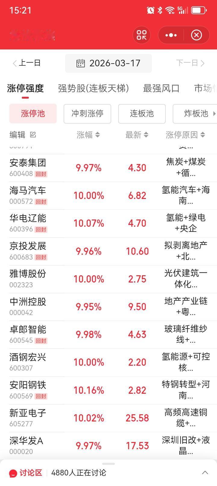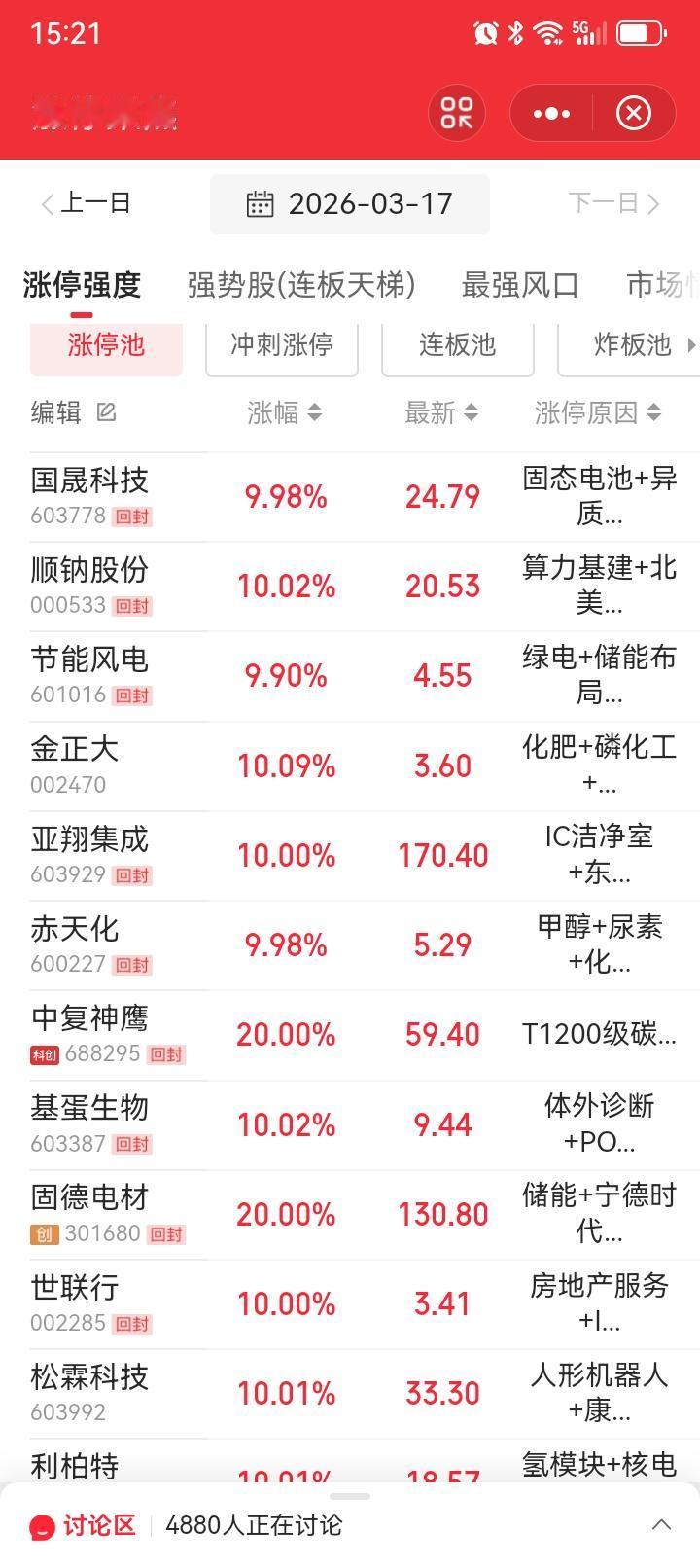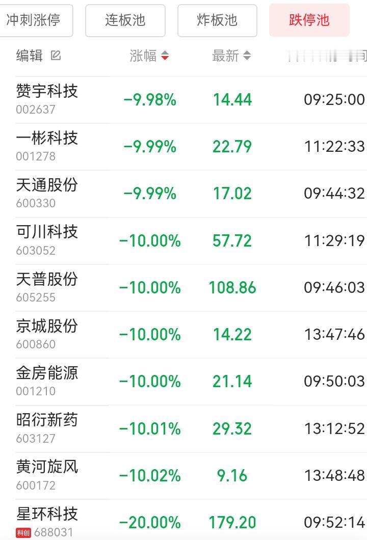 A股今天出现了小型股灾,就连一向很“牛”的沪指,也很难看。个股下跌家数4541只,占比84%,亏钱效应十分明显。说实话,今天能赚钱的,如果不是运气,那就是水平很高了。短线情绪很差,涨停个股39只,跌停个股10只,封板率70%。这几天打板资金被量化搞自闭了,涨停后隔日跌停,一点溢价都没有。行情低迷,多看少动,控制回撤。 涨停股: 国晟科技,顺钠股份,节能风电,金正大,亚翔集成,赤天化,中复神鹰,基蛋生物,固德电材,世联行,松霖科技,利柏特,祥明智能,潞化科技,顺灏股份,晨丰科技,仁智股份,正泰电源,双欣材料,法尔胜,纳百川,锡华科技,兆新股份,江苏新能,爱建集团,协鑫集成,三房巷,京能置业,安泰集团,海马汽车,华电辽能,京投发展,雅博股份,中洲控股,卓郎智能,酒钢宏兴,安阳钢铁,新亚电子,深华发A。 跌停股:赞宇科技,一彬科技,天通股份,可川科技,天普股份,京城股份,金房能源,昭衍新药,黄河旋风,星环科技。 希望冰点行情赶紧过去,新行情赶紧到来,很多散户快扛不住了。