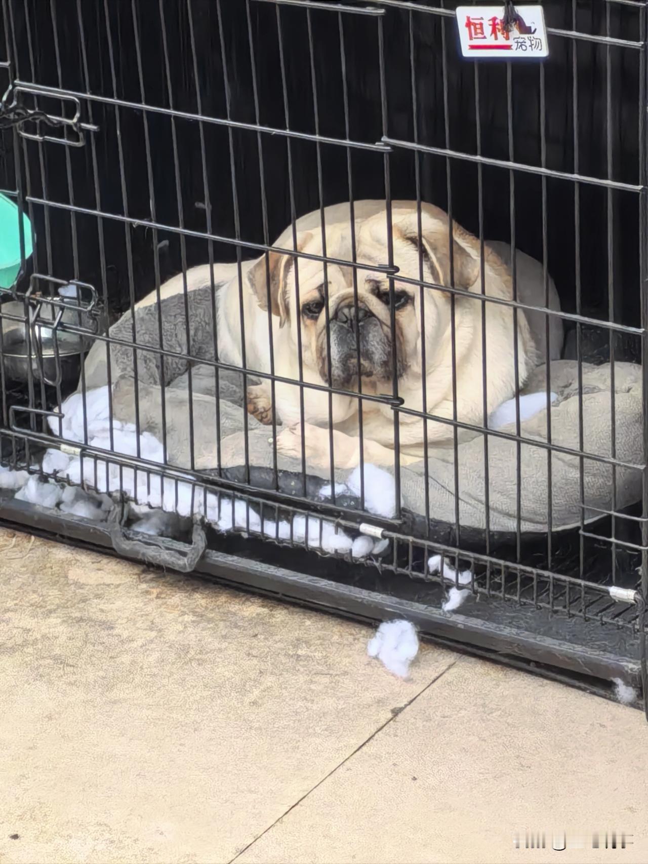 这狗太惨了,天天路过时都看到被怪关在笼子里面,这一看就没怎么运动,没机会运动啊,看它的眼神多么的忧郁,天天被关着不忧郁才怪。