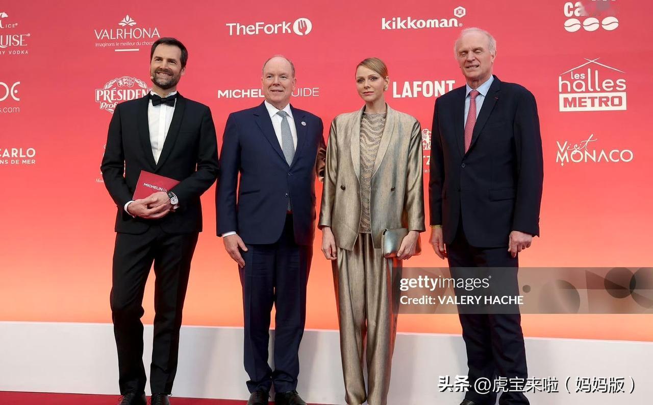 夏琳王妃再不要瘦下去了!亲王夫妇出席米其林颁奖礼,夏琳王妃身着光泽度超高的西装套装,远远看快瘦成纸片人了!