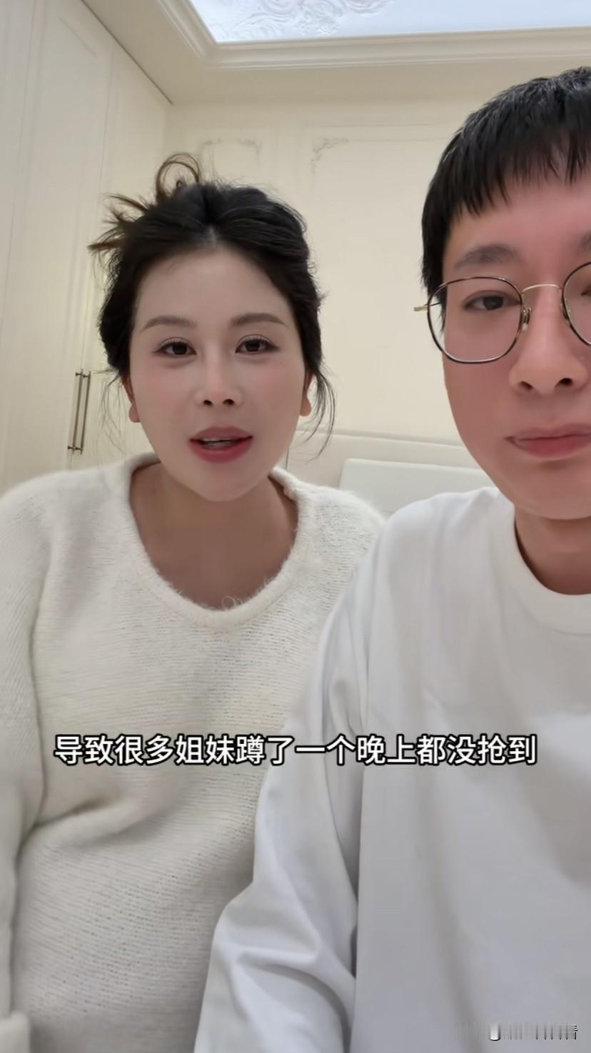 宋玉希挺着大肚子跟老公晚上一起直播,这也是他们创立自己品牌以来第一次直播,她们直播完还连夜开了会,她表示这次备货不足,导致很多人没有抢到。 她老公也表示,因为这次备货保守了些,毕竟资金投入也很多,风险很高,所以导致他们备货不足,不过他们会不断优化,给大家呈现更好的品。 夫妻两人也是拍短视频人气一度升高,慢慢成为网红,这些年不断生孩子买房子,再到现在在杭州立足,可以说他们话题不断,这次改成自己投资,有自己品牌的货品,也可以说是一种新的模式,他们在赚钱这一方面还是挺有能力的。