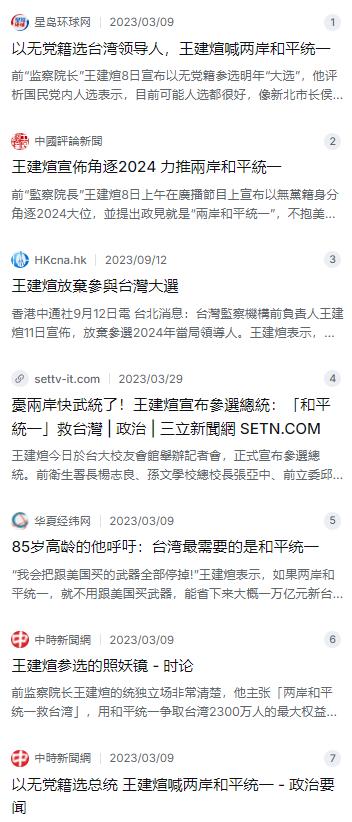 “两年内我会让台湾与大陆统一,不再让台湾当美国的哈巴狗!”23年知名统派人士王建煊,在参选台湾地区领导人时放下的狠话,他认为如果不能和平统一,台湾就完蛋了。 麻烦看官老爷们右上角点击一下“关注”,既方便您进行讨论和分享,又能给您带来不一样的参与感,感谢您的支持! 2023年3月,当绝大多数人都在关注那些老牌政客的动向时,一位85岁的老先生突然杀了出来,直接甩出一颗震撼弹。这个人就是台湾地区的前“监察院长”王建煊。他宣布要参加2024年的领导人选举,而且喊出的口号让所有人都没法装听不见——“如果让我当选,两年内,也就是2025年,我就让台湾和大陆和平统一!” 老先生这次是玩真的,他没挂国民党的牌子,也不是民进党的人,而是以无党籍身份参选。有人问他为啥这把年纪了还要折腾,王建煊的回答很直白,他说现在台湾的情况已经坏到底了,两岸关系紧张到随时可能打起来,他是实在看不下去,再不站出来说话,台湾就真要“完蛋”了。 说起王建煊,老一辈的人都知道,这人有个外号叫“小钢炮”,性格刚烈,眼里揉不得沙子。他其实是安徽合肥人,10岁那年跟着父母去了台湾,在那边一待就是七十多年。虽然早年是国民党员,但因为看不惯党内的一些勾当,后来干脆和赵少康那些人一起脱党,自己创立了新党。退休后这些年,他和老伴儿一直忙着做公益,特别是那个“捡回珍珠计划”,在大陆捐资助学,帮助了无数贫困学生,可以说是个实实在在干事儿的人。 但这次参选,他话风锋利得很。谈到两岸关系,他直接开骂,说民进党那帮人就是美国的“哈巴狗”,美国政府让干啥就干啥,根本没把台湾老百姓的死活放在心上。他尤其看不惯的是,台湾每年要花那么多老百姓的纳税钱,去向美国买一堆破铜烂铁的武器。王建煊说,这纯属浪费钱,一旦两岸和平统一了,干嘛还要买武器打自己人?他在记者会上拍着胸脯承诺,只要他当选,第一时间就把对美军购全停了,省下来的那笔巨款,据说有大概一万亿新台币,全部拿来贴补岛内的劳保亏损,或者用在教育和养老上,让老百姓得到点实惠。 对于国民党的那些候选人,王建煊也没客气。他评价说,像侯友宜这些人,做市长搞市政确实有两把刷子,人品也不差,但问题就出在一个地方——这些人没有一个敢光明正大地主张和平统一。在统独这个大是大非的问题上,个个都躲躲闪闪,含糊其辞。至于民进党的赖清德,王建煊更是直接定性,那帮人搞“台独”,大陆那边怎么可能答应?这条路走到底,就是把台湾往火坑里推。 有人可能会笑话他,说一个85岁的老头子,就算选上了,真能在两年内搞定统一这么大的事?王建煊还真有一套具体的想法。他提出,上任第一天,他就要成立一个两岸谈判的特别小组,不管蓝绿白,哪个党派的人愿意来谈都欢迎。他打算在一个月内就启动和大陆的官方对话。王建煊的逻辑很实在,他说谈判嘛,就是有给有拿,大家坐下来谈条件,不能“老子就这样”蛮横不讲理。他预估,第一年反复谈,第二年就能签约,两年时间,只要大家同意一个中国原则,其他具体的事都可以商量,争取给台湾2300万人争取到最大的权益。 他特别强调,和平统一并不是要吞掉台湾现有的东西。他给大家吃定心丸,说即便统一了,中华民国的称号可能会消失,但台湾现在这套社会制度和生活方式完全可以保留下来,这叫“一国两制”。他最担心的就是打仗,说现在大陆的军事力量多强啊,外面都有人在传,六个小时就能让台湾瘫痪。一旦武统,台湾就真的什么都没了,如果美国再来插手帮忙,那台湾就会变成第二个乌克兰,到时候受苦的还是老百姓。 既然说得这么好,为啥后来没选下去呢?这里面有个很现实的考虑。到了2023年9月,王建煊宣布退选了。他在接受采访的时候说了心里话。他说,参选光靠嘴皮子不行,还得凑够几十万的连署书,这本身就很难。但真正让他决定退出的,是他算了一笔政治账。他担心自己如果坚持选到底,哪怕最后只拿到了3%到5%的选票,这些票大概率是从泛蓝阵营分出来的。万一因为分票,导致民进党的赖清德捡了便宜当选,那他王建煊就成了历史的罪人。为了避免这个最坏的结果,他选择了放弃。 虽然不选了,但老先生那股气还在。他说,当初出来参选的目的其实已经达到了,就是要把那层窗户纸捅破,唤醒台湾的老百姓,告诉大家两岸关系已经到了非常危险的边缘。退选之后,他依然没闲着,只要有场合有机会,他还是那个坚定的统派代表,到处奔走呼吁,坚持传递两岸和平统一的理念。有人说他是政治人物,也有人说他更像一个忧心忡忡的家长。毕竟,一个快九十岁的老人,名下没什么财产,钱都捐出去做慈善了,在台湾住了七十多年,却还要被人骂“外省猪”。面对这种侮辱,王建煊很坦然,他说我吃台湾米喝台湾水这么多年,做的慈善基金会一个接一个,对台湾的贡献实实在在,到底谁更爱这片土地,大家心里都有杆秤。
