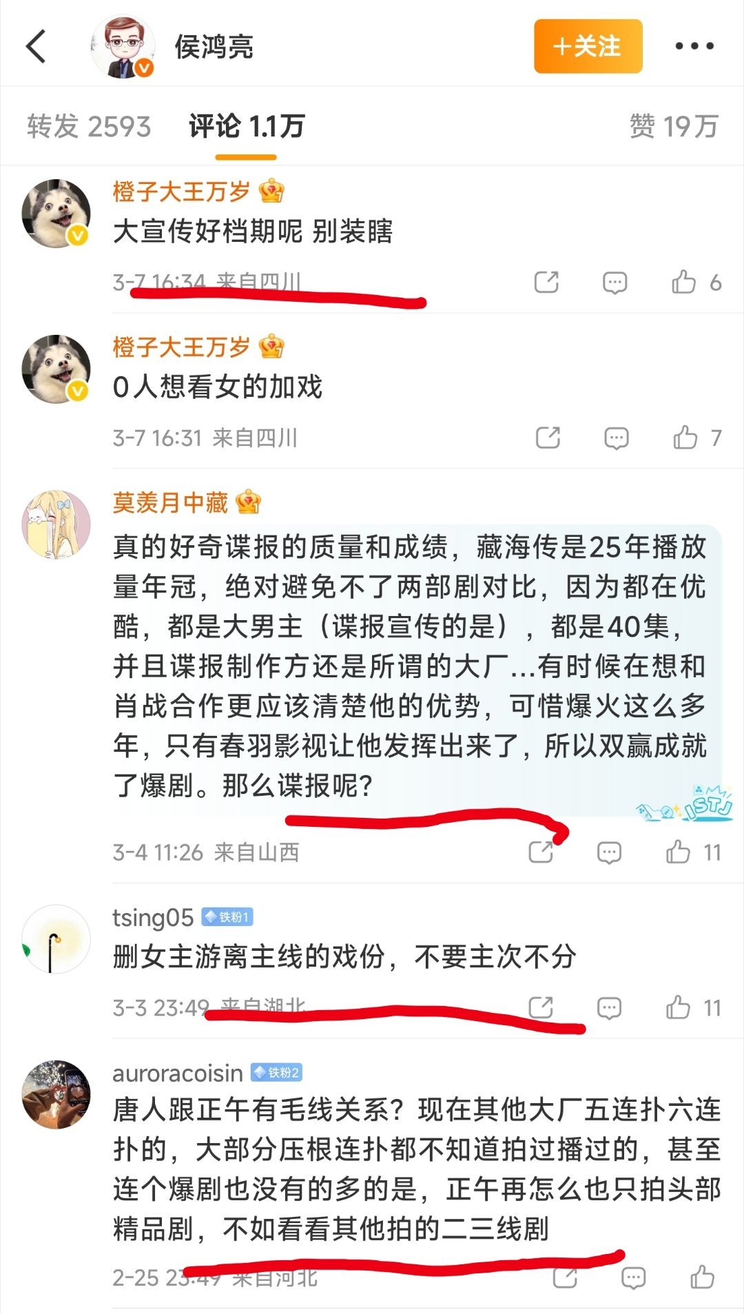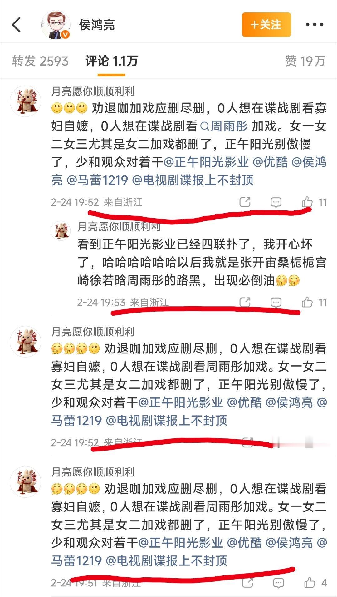 正午阳光董事长侯鸿亮评论区,好搞笑。