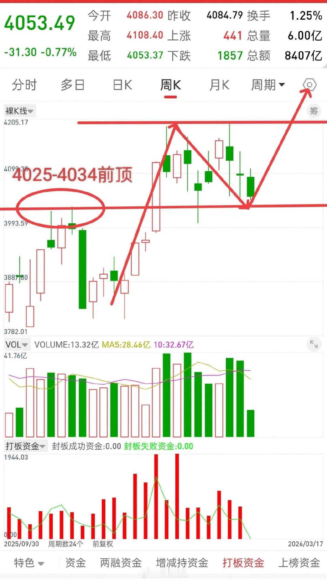 如果是做中线,4000点整数关口,这个位置只要不跌破,可以中线持有,等待拉升,如果收盘跌破,离场观望。