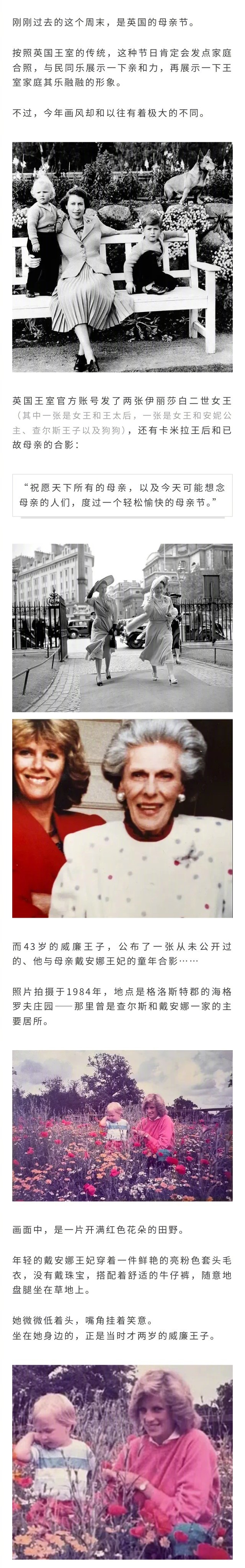 威廉王子在母亲节公开了一张戴安娜王妃的未公开照片,照片中只有戴安娜和他自己,没有