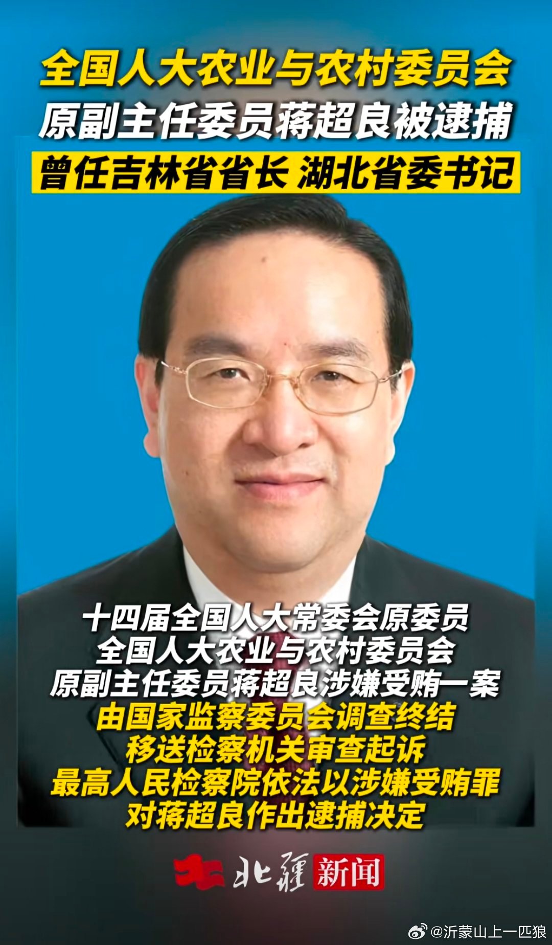 【“没有权力拿不到这么多钱”】 原中央委员,全国人大农业与农村委员会副主任委员蒋超良被逮捕。蒋家三兄弟全部涉案。