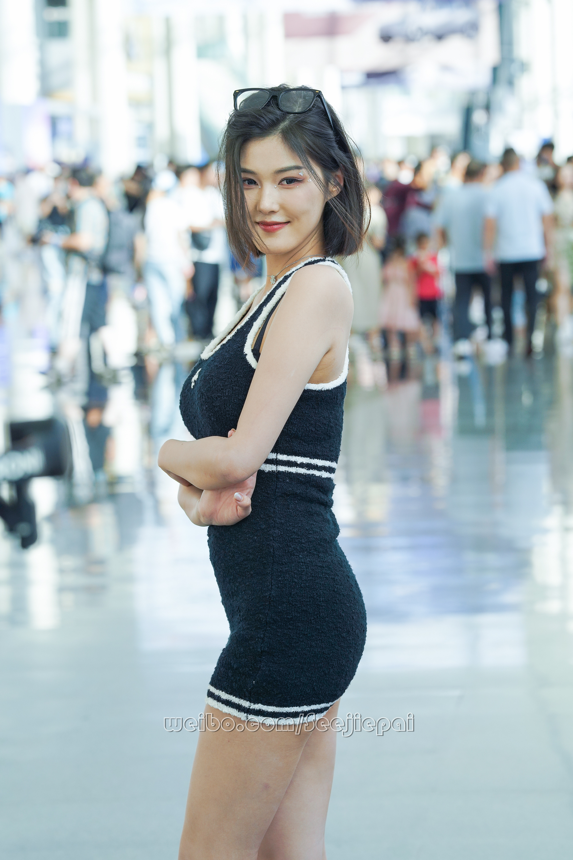 简约白T恤搭配米色短裙,手提包点缀,尽显优雅气质!