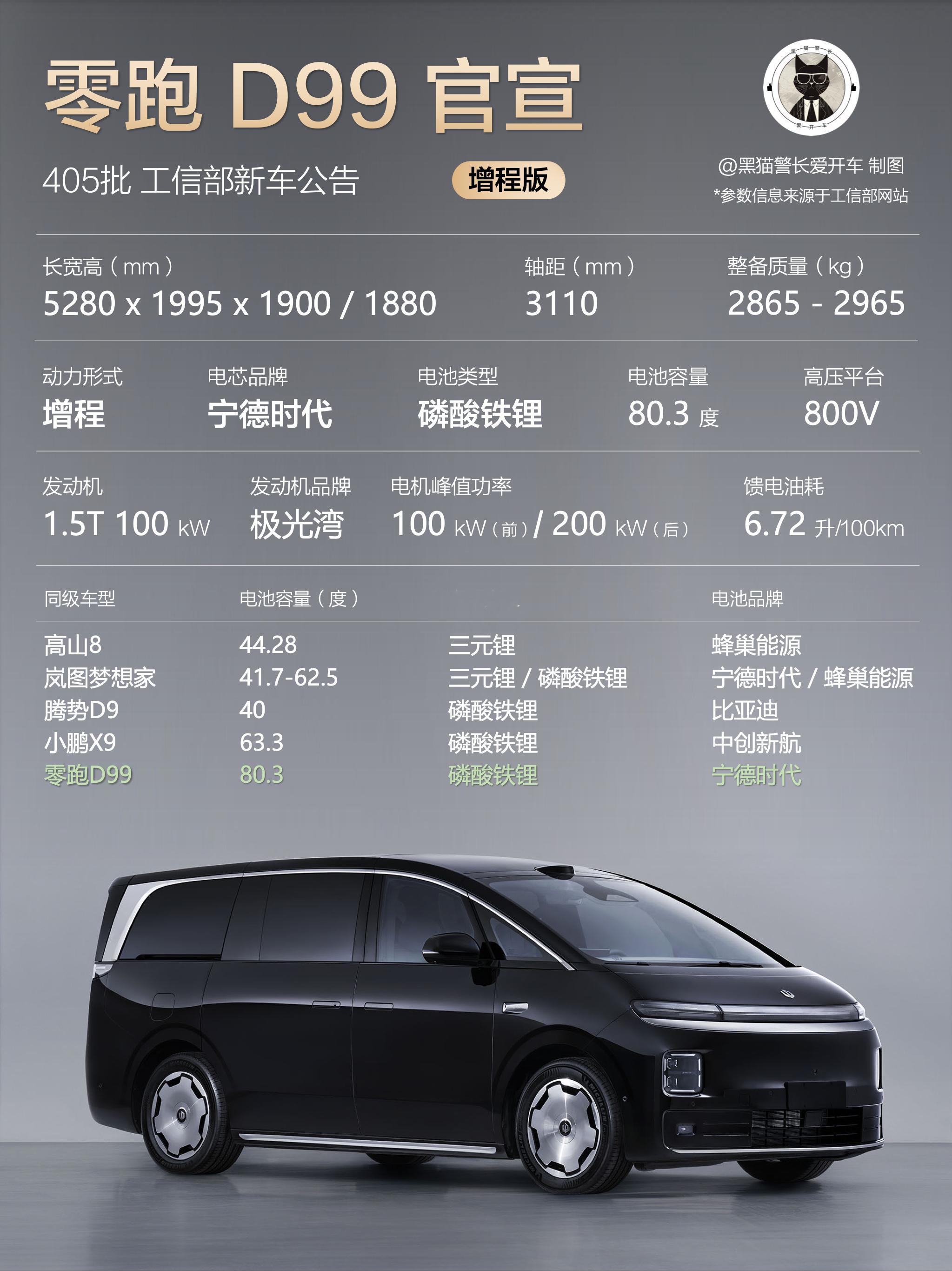 目前看,我觉得零跑D99算能打的,80.3度是插混/增程MPV最大的,参考D19 CLTC工况的纯电续航得了能有将近500km,要知道今年要上的一些高端MPV续航还是200多km。