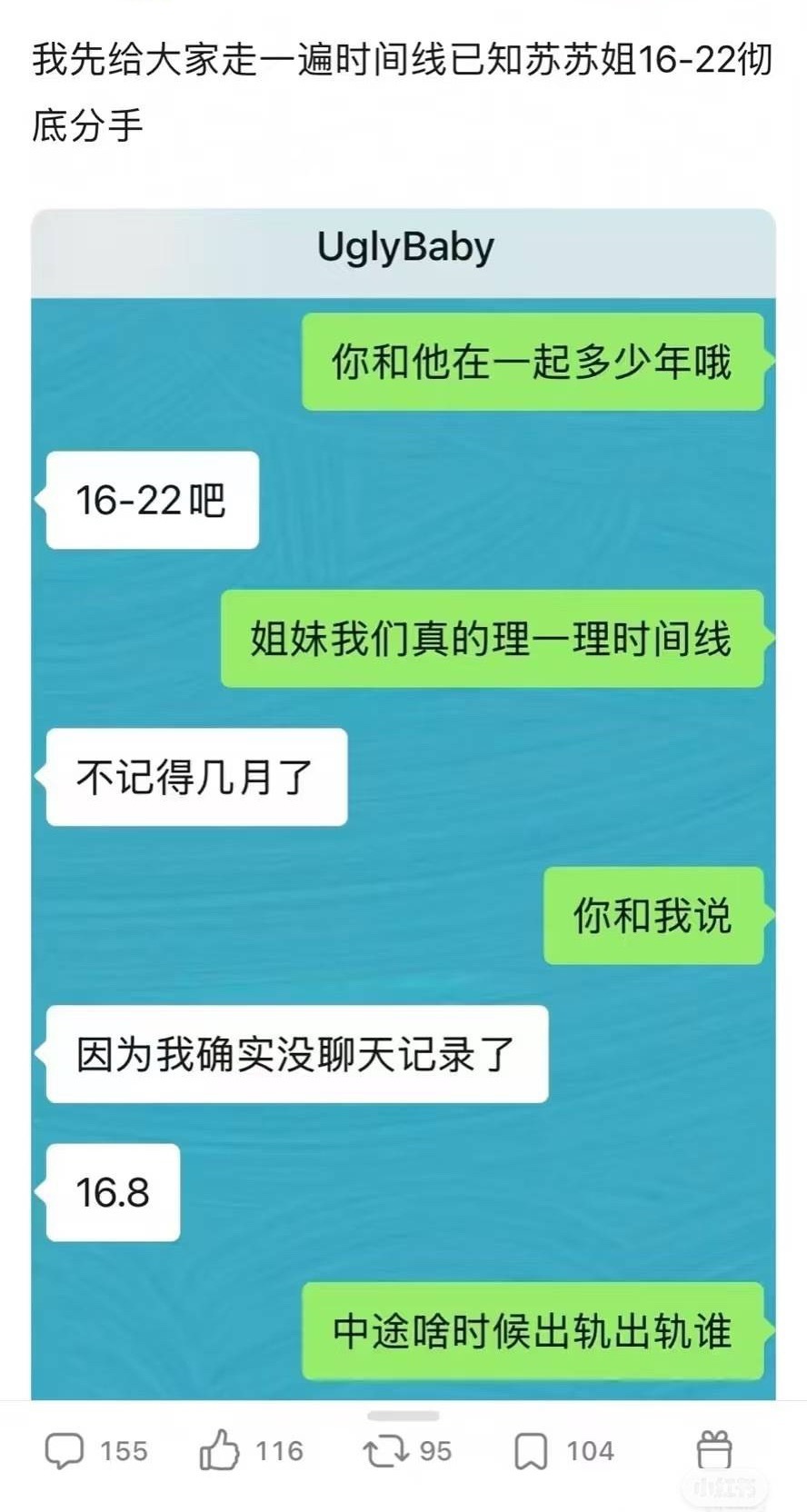 苏苏和九成美时间线也重合了,苏苏田雷恋爱时间是16年~22年,然后美美和田雷是2
