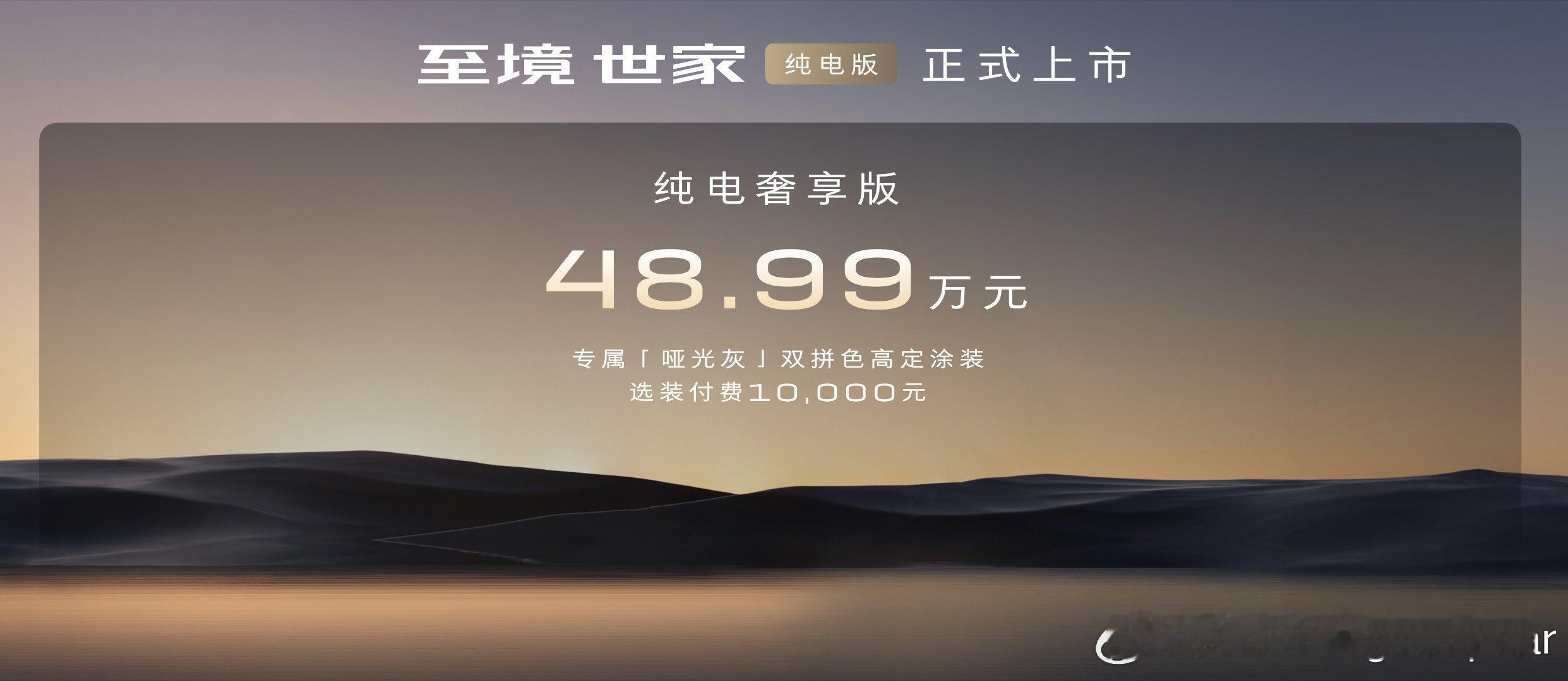 重点是,它还给你金石之约兜底。48万99至境世家纯电版上市新车新能源汽车