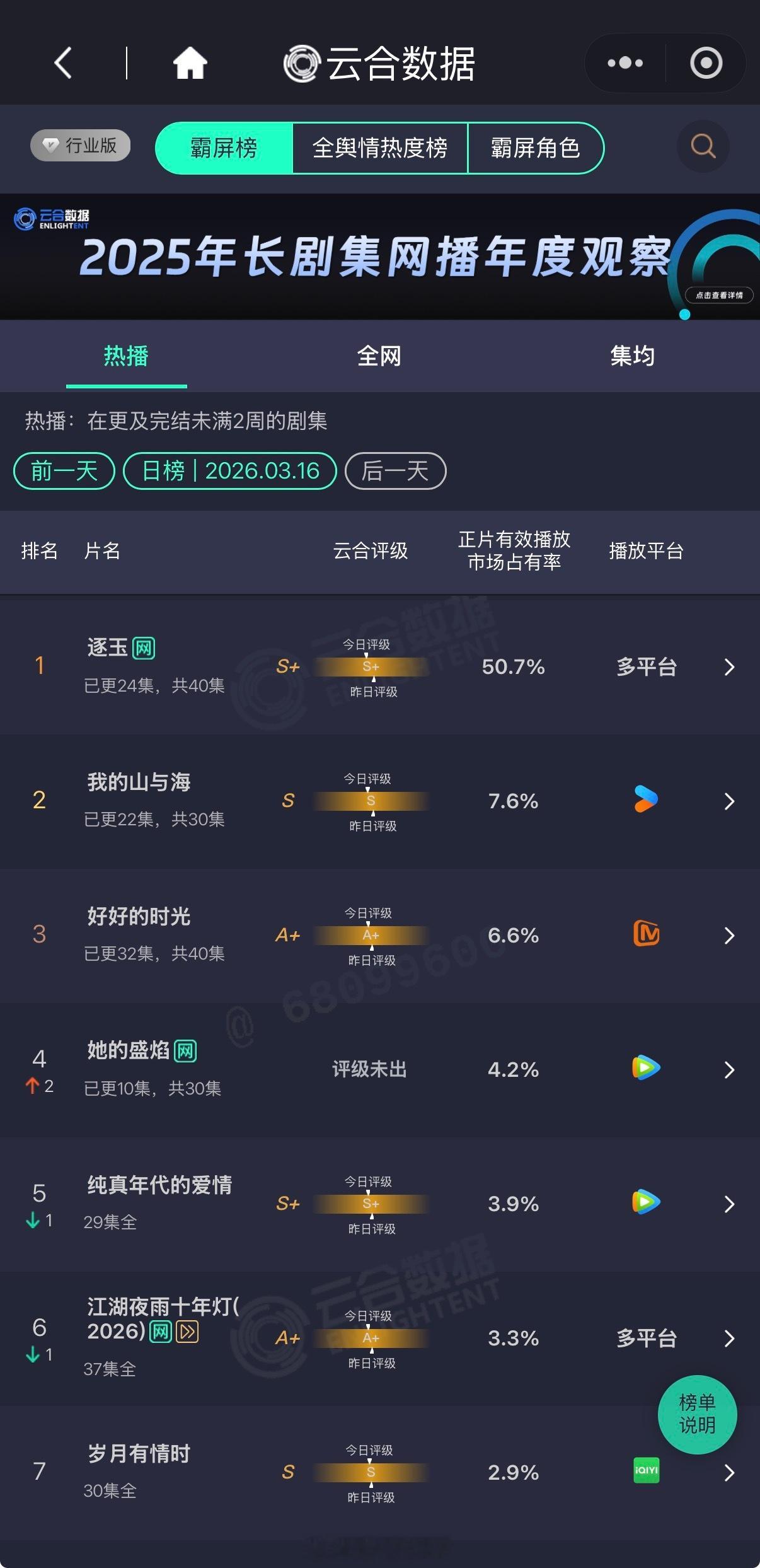 张凌赫 田曦薇《逐玉》单更云合市占率依然超50%,并在开播11天升至年榜第二✌️