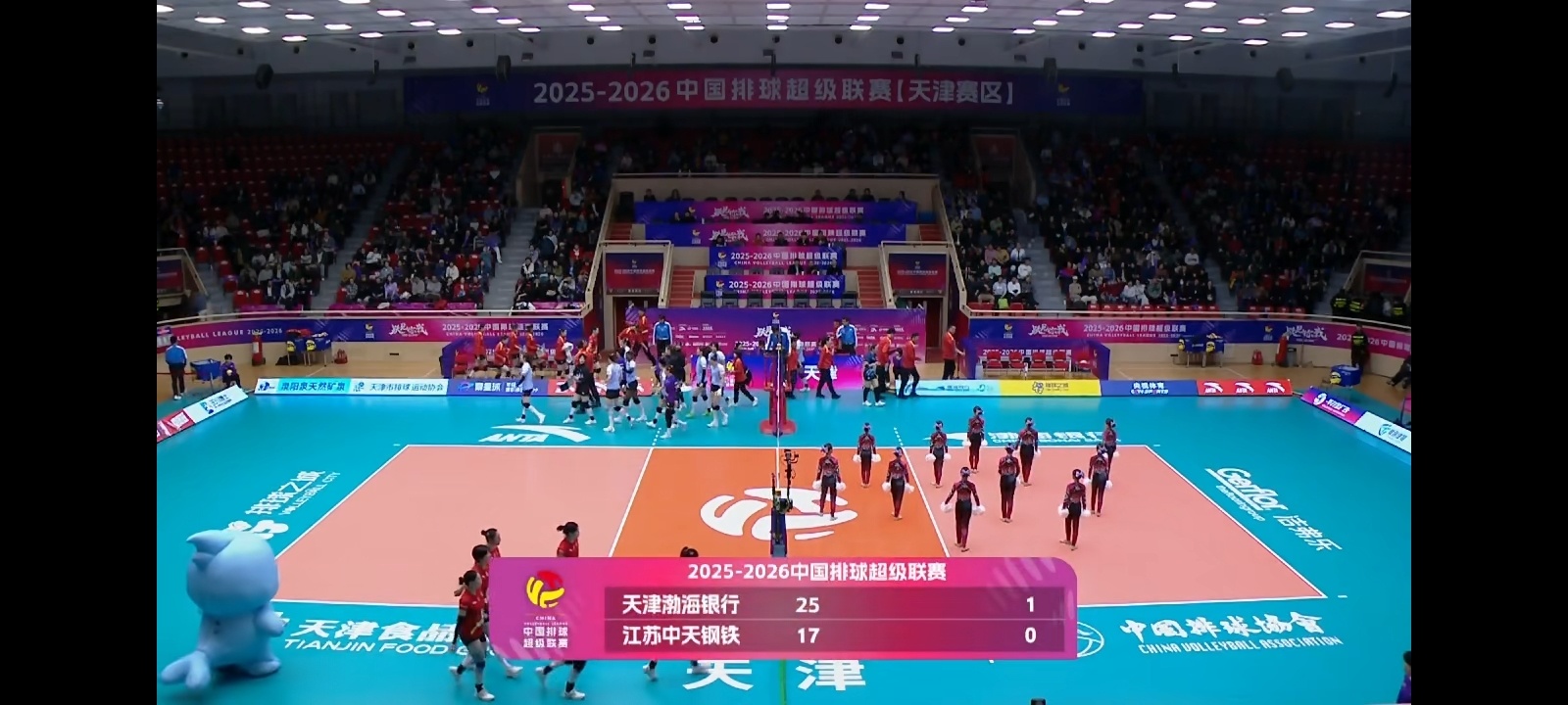 第一局天津女排25比17江苏女排,江苏后面这一传太可怕了,这可是国家队的主攻组合