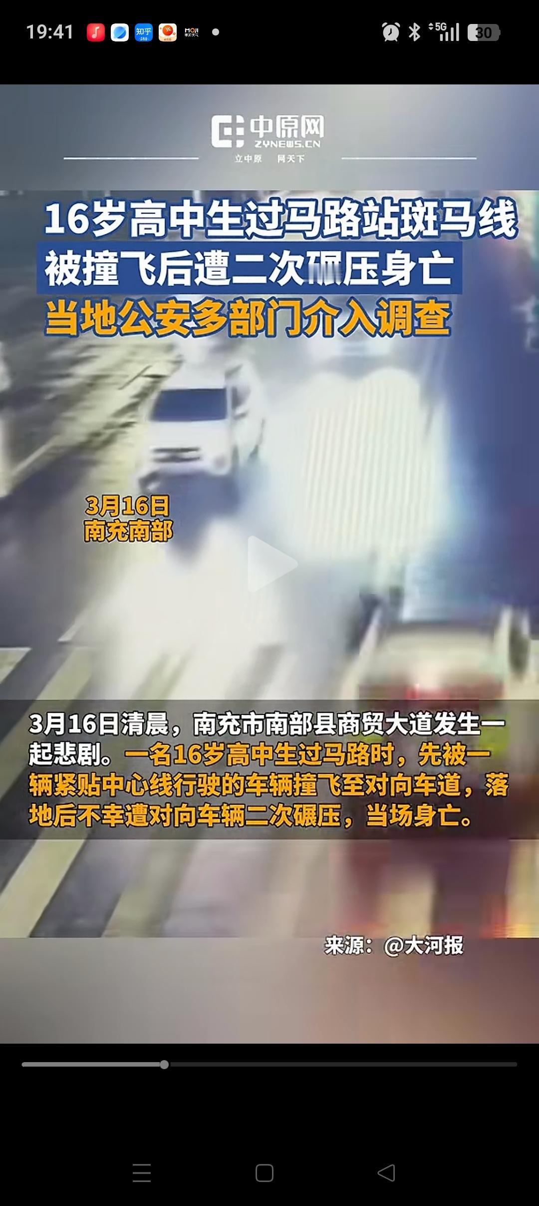 南充16岁高中生斑马线被撞, 很多人都怪对面的车开了远光! 事实并非这样。 从视频上看,撞人的小车司机明显是压着双黄线过来的,而且速度还很快,根本没有减速的意思。 作为有经验的司机,一般遇到远光灯,看不清楚前面状况的情况下,应该先减速。 而他没有,且是压着双黄线行驶,这种驾驶习惯非常的不好。 可惜了,男孩再也不能回到自己熟悉的教室[流泪]。同时这位司机也要为自己的“失误”,付出惨痛的代价[祈祷][祈祷]