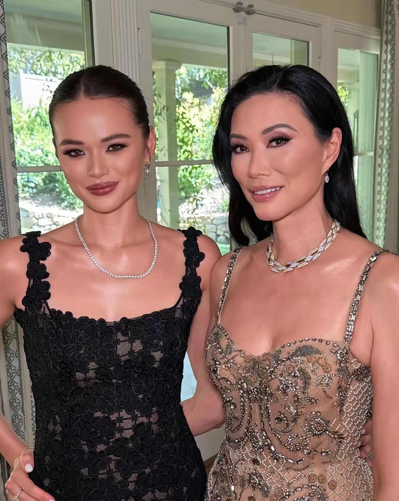 邓文迪携大女儿现身奥斯卡,母女同框画面太养眼了! 当天邓文迪身穿半透视鎏金亮钻吊带修身长裙,身材高挑,肤色白皙,长发披肩,气质不凡,她手拿与衣服同色系包包,看起来贵气范十足,真是令人羡慕! 大女儿格蕾丝身穿黑色吊带修身长裙,裙子上注入黑色花朵,看上去性感迷人,格蕾丝皮肤白皙水嫩,五官精致,颜值比妈妈还高,母女同框犹如姐妹一样,真是太炸裂了。