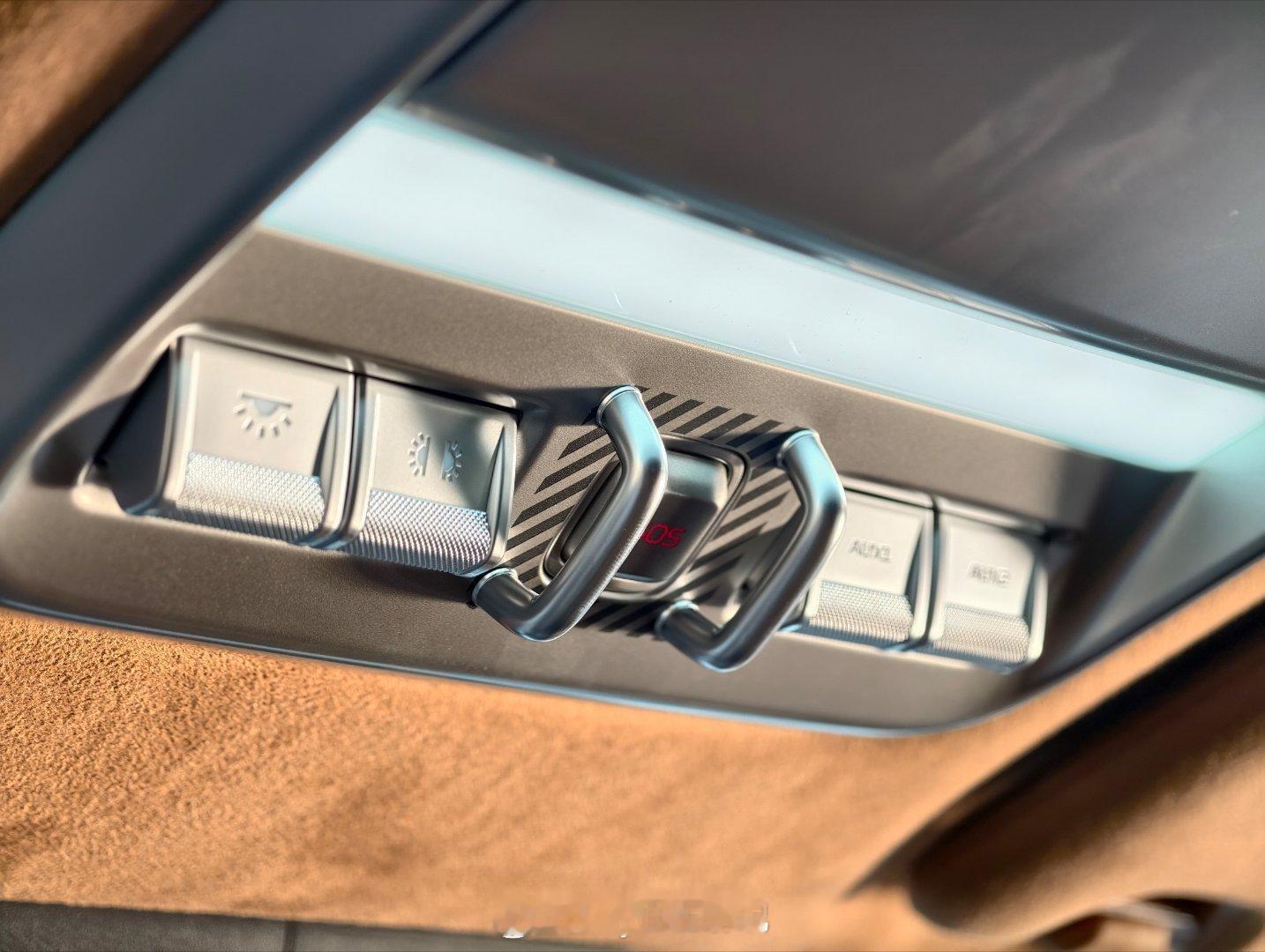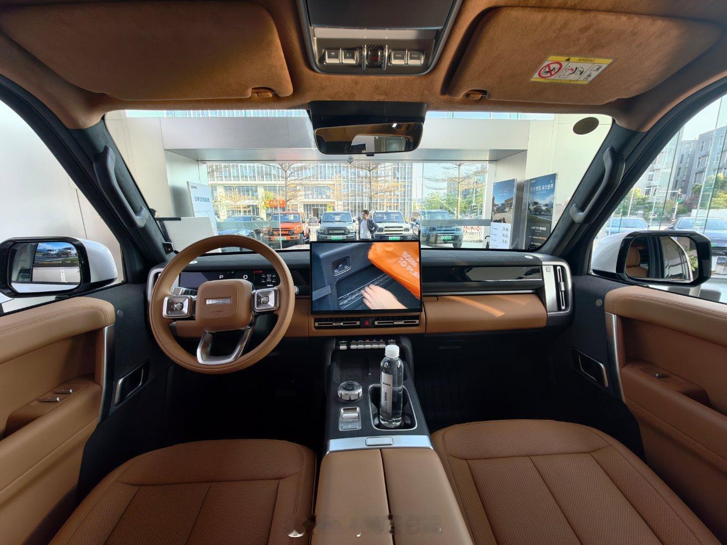 V27这台车设计感还是很强的,属于复古硬派的设计,顶棚用了翻毛皮的材料,手感很好,顶部那排按钮SOS边上两个小金属扶手还挺可爱的。之前有网友问它这个不可收起的踏板会不会不顺脚?我试了一下,挺顺的,而且A柱有个拉手,可以很帅的上车,如果你开去玩泥了上下车还是要注意一下裤腿别蹭踏板。小遗憾也有,没有HUD,开习惯有HUD的车型之后就会有依赖感了。另外车内门把手这个位置略微有点低,我第一反应是到银色这个大面板这了找拉手,膝盖会挡到门把手。UI方面可以OTA一下,就是回主桌面那个图标,我一直以为那是录像或者录屏图标,我觉得换成iCar那个小车作为图标也比这个识别性更好。