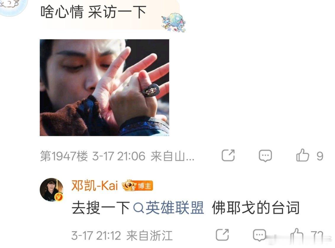 《逐玉》里孔雪儿的CP邓凯,居然也是撸友翻粉丝评论,回复图一是啥心情,他说是佛耶戈台词痛!太痛了!英雄联盟
