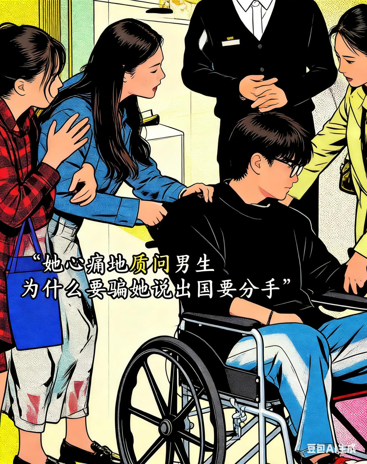 人生最大的遗憾是有缘无分,明明俩个人彼此相爱,却因各种原因,却不能在一起! 相恋多年的男友,突然有一天,说要出国留学,不知何时能回来,也许不再回来提出了分手。 两年后,女孩嫁人了。 一天,怀着身孕的女孩与闺蜜逛商场时,遇到坐在轮椅上的出国留学前任男友! “他不是说不再回来吗,他怎么坐轮椅?” 女孩带着疑问,上前质问前男友。 男孩没转头听声音也知道,是他曾经最爱的人。 男孩的妹妹告诉女孩:两年前男孩出了车祸下身瘫痪,不想成为女孩的负担,才说谎自己出国留学不再回来,提出分手。 女孩看着男孩满是心疼与无奈,拉位男孩的手质问男孩:为什么骗她? 男孩推开女孩的手,让妹妹快点推他走,自始至终男孩不敢看女孩一眼,他怕再想起与女孩美好的曾经。 当初那么爱的人,怎么可能因出国就不爱了,他也很想与女孩在一起,但,他不能这么自私,不能成为女孩的负担。