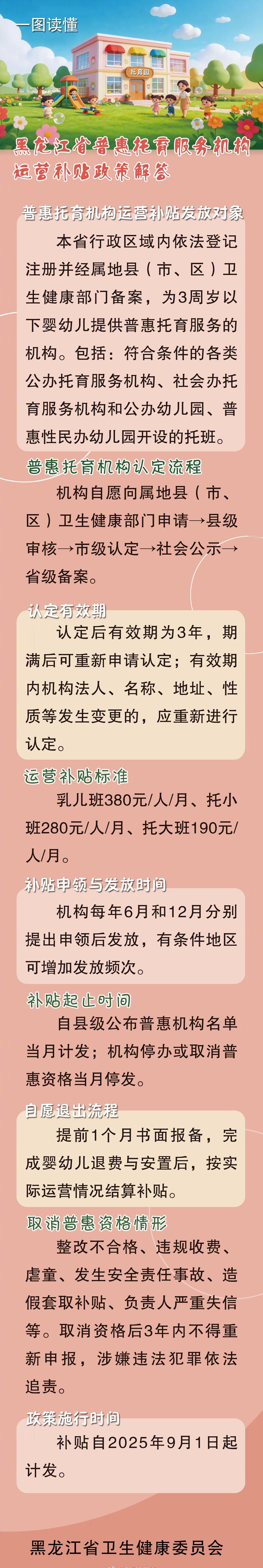 温馨提示【黑龙江普惠托育“双补贴”落地】近日,我省普惠托育服务机构运营补贴政策落