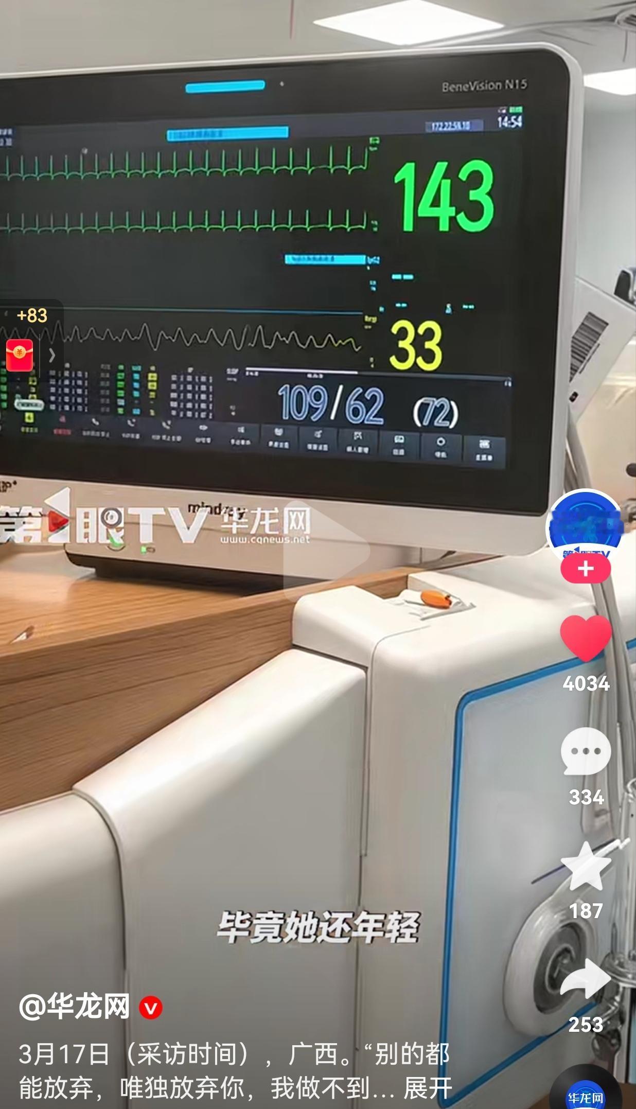 破防了!31岁妈妈肺癌晚期求安宁病房,丈夫哭着喊:别的都能放弃,唯独你我做不到! 去年5月,广西这位31岁的妈妈突然咳血,一查就是肺癌晚期,连手术机会都没给留。从广西转到广州,9次化疗把人熬得脱了相,头发掉光,连呼吸都疼,最后连路都走不动了。 她才31岁啊!孩子也才刚满1岁,还会对着她笑,会伸手要妈妈抱。可现在她躺在病床上,插着氧气管,连抱孩子的力气都没有。 治愈希望越来越渺茫,而且,她很痛苦,实在承受不了这份悲痛,再加上她也不忍心再拖垮这个家,于是,主动跟丈夫说:“带我去安宁病房吧,我太累了。” 可是,丈夫赵先生听到后,心态直接崩溃了,他红着眼跟记者说:“自从老婆生病后,我没了工作,没了收入,欠了一屁股债,这些我都能扛!唯独让我放弃她,我做不到!她还年轻,我们的孩子才一岁多,她走了,我和孩子该怎么活?” 一边是妻子被病痛折磨得生不如死,一边是丈夫拼尽全力想留住她,这道选择题,真的是太沉重了! 有网友看到后评论道:“我也是妈妈,看不得这个!孩子才一岁,她怎么舍得啊……” 也有的网友说自己的经历:“我爸肺癌走的时候,我也说过这话,可最后还是留不住。这种无力感,只有经历过的人才懂。” 也有的网友说:“丈夫说的没错,别的都能放弃,唯独家人不行!哪怕多陪一天,都是赚的!” 还有的网友说:“安宁病房不是放弃,是让她少受点罪……可丈夫怎么舍得啊,那是他的命啊!” 看完这段视频,我一个人在屏幕前直接破防,眼泪控制不住地往下掉。 这哪里是新闻,这就是我们普通人,最真实、最扎心、最无力的人间。 31岁,正是一个女人最好的年纪。孩子才刚满1岁,会笑、会闹、会伸手要妈妈抱。可一场突如其来的肺癌晚期,把一切都碾碎了。 9次化疗,人瘦得脱了相,头发掉光,连呼吸都带着疼,路都走不了。她不是不想活,是真的太痛、太累、太不忍心再拖垮这个家。 所以她才轻轻说一句:“带我去安宁病房吧,我太累了。” 这句话说出口的时候,她心里比谁都痛。她舍不得孩子,舍不得丈夫,舍不得这个还没来得及好好爱的世界。可她更怕,自己成为家人的累赘。 而丈夫的崩溃,更让人心碎。没工作、没收入、欠债累累,他全都扛了下来。可唯独让他“放弃”妻子,他做不到,也死都不肯。 他不是不懂道理,他是真的爱到骨子里了。这个女人,是他的妻子,是孩子的妈妈,是他的半条命。让他松手,比剜他的心还疼。 一边是痛到想解脱的妻子,一边是拼了命想挽留的丈夫。 这道题,根本没有正确答案,怎么选都是锥心刺骨的疼。 很多人说,安宁病房不是放弃,是让她少受罪。可只有真正站在丈夫的位置才明白:只要人还在,就还有盼头;人一旦走了,就真的什么都没了。 这个世上,最残忍的事莫过于: 你拼尽了一切,却留不住一个你想共度一生的人;你明明那么爱,却只能看着她被病痛一点点折磨。 我们都是普通人,没那么多钱撑天价医药费,没那么多路可以走,很多时候,我们拼尽全力,也只能眼睁睁看着。 丈夫不是固执,是舍不得;妻子不是绝望,是太懂事。 这对夫妻,没有一个人有错,可命运,却把他们逼到了最痛的角落。 写到这里,我真的控制不住情绪。我们总以为来日方长,总以为灾难离自己很远。可真正等到降临在身上才知道:在生死面前,我们都渺小得不堪一击。 只愿这位妈妈能少一点痛苦,只愿这个爸爸能被生活温柔以待, 只愿那个还不懂事的孩子,能永远记得,他曾经有一个那么爱他、又那么舍不得他的好妈妈。 最后想说:人间最痛,不是生离死别,是你明明拼尽了全力,却还是留不住最想留住的人。所以说,珍惜眼前人吧,真的,别等失去了,才后悔莫及。 对此,你怎么看?