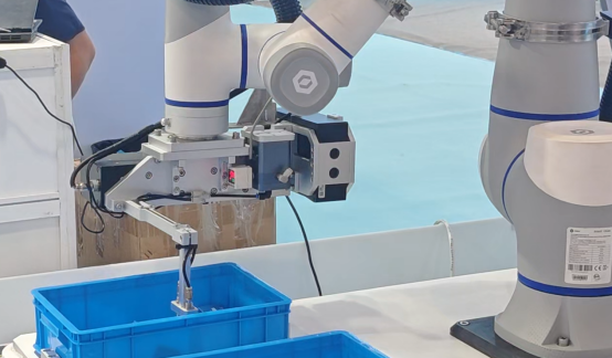 在实际应用中,复合机器人可使协作机器人有更广阔的作业空间,同时2D/3D视觉系统提供高精度的定位引导。这一特性使其能够轻松实现不同工位物料的自动搬运、分拣、装卸等工作,广泛应用于汽车、电子、新能源、机加工等行业。