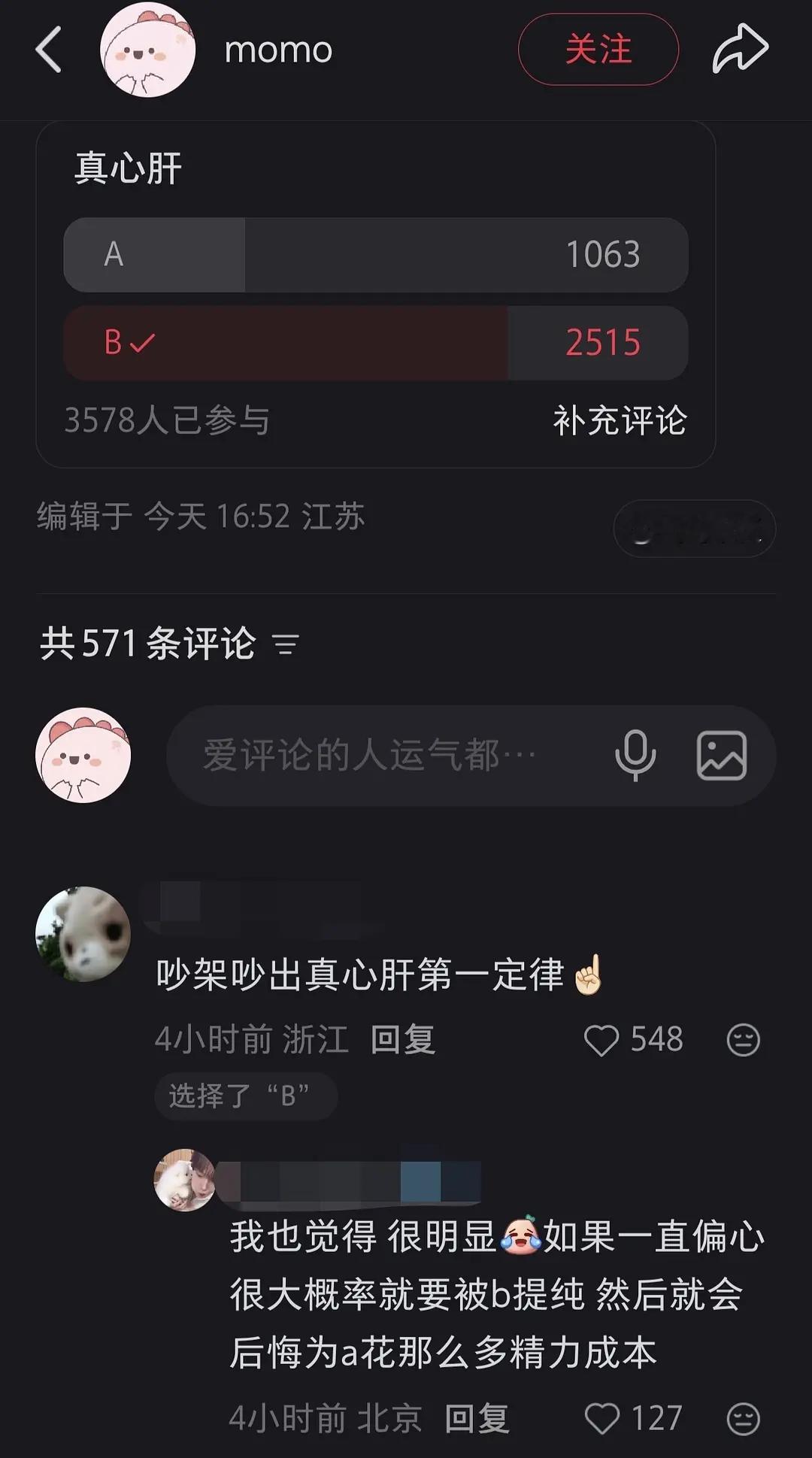 🍠热贴有人求判断哪个是真心肝……看情绪波动心肝很像A,但又说ab打起来她会站b