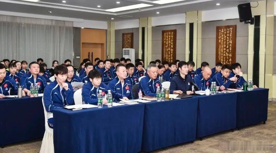 国乒今天开会了。有趣的是,莎莎,曼玉,头哥虽然是运动员,但是坐在了第一排,跟领导们坐在了一起。看来在国乒,实力说明一切啊。第一排正中间是大力,秦指导和肖指导一左一右,然后就是两位主教练分坐两边,各自的运动员坐在自己教练旁边,世界第一比世界第二坐的靠里一些[捂脸]。哈哈,之所以观察这么细,是因为在中国这个讲究礼仪的国度,这些座位都是非常严谨的,能说明每个人在团队中的分量。挺好,这座位的排列跟大家心中的预期一模一样。