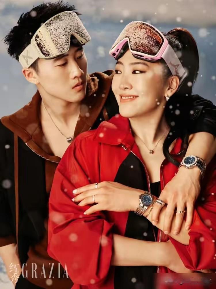 冬奥冠军夫妻徐梦桃和王心迪拍杂志照,王心迪的肌肉被展示得不错,但标志性的虎牙被P没了,牙齐了,但“可爱度”逊色不少[捂脸]