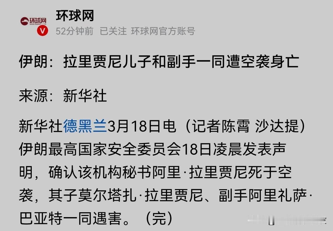 以色列的情报,到底精准到了什么地步? 伊朗高官,已经成了最高危的职业。 刚刚,伊朗最高国家安全委员会秘书阿里·拉里贾尼,连同他的儿子、副手,还有巴斯基民兵指挥官戈拉姆·雷扎·苏莱曼尼,都在空袭中身亡。 遇袭重伤,至今情况不明,高层权力摇摇欲坠。 想想看,新任最高领袖穆杰塔巴的家族,早已被仇恨填满:杀父之仇、妻儿惨死,现在岳父拉里贾尼、小舅子也接连殒命,新领袖又生死未卜。 我敢断言,这场战争早已不是利益之争,是不死不休的复仇,中东的天,要彻底变了!