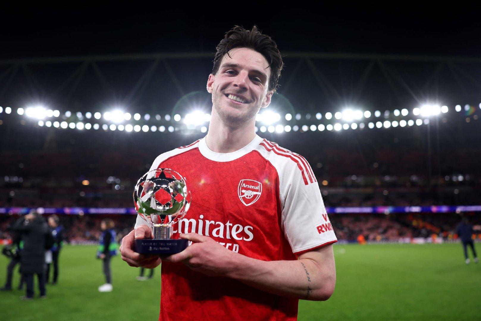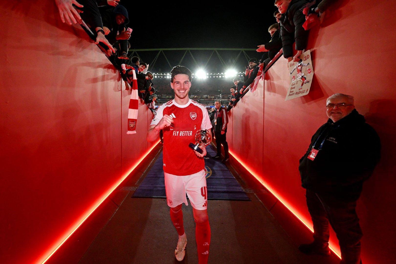 赖斯被评为阿森纳2比0勒沃库森 比赛的最佳球员🏆欧冠 阿森纳