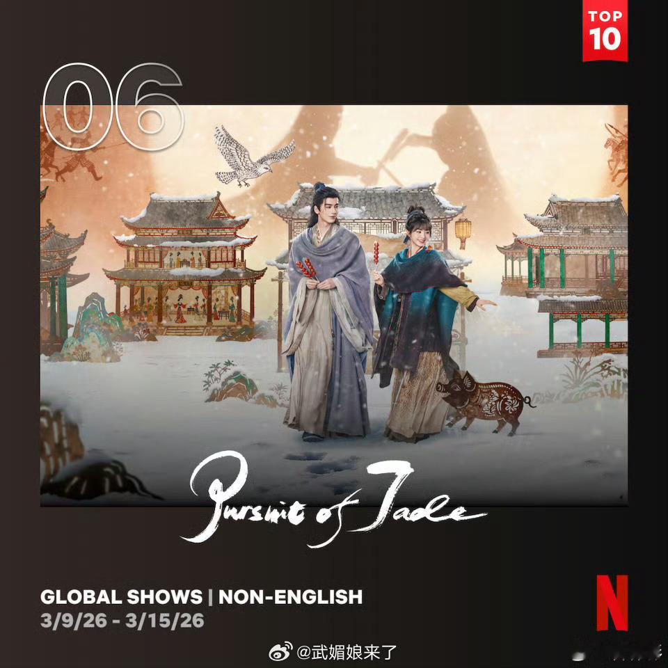 逐玉成首部进入网飞周榜的内地剧 张凌赫田曦薇《逐玉》拿下网飞官方周榜全球第六❗️