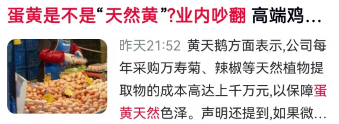 一枚鸡蛋,最近把“可生食鸡蛋”的代表品牌黄天鹅推上了风口浪尖。 事情的起因并不复杂,却直击消费者痛点。日前,有打假团队爆料,在送检的黄天鹅鸡蛋中检出了微量“角黄素”。这一消息一出,舆论瞬间炸锅。毕竟,黄天鹅一直主打“饲料无添加”,很多消费者愿意为其高出普通鸡蛋几倍的价格买单,看中的就是这份“纯净”。现在突然冒出个化学名词“角黄素”,大家的第一反应往往是:我是不是交了智商税? 面对质疑,黄天鹅母公司的反应很快,发布声明直接否认添加了“人工合成色素”。他们在声明中算了一笔账:为了保障蛋黄那种诱人的天然色泽,公司每年采购万寿菊、辣椒等天然植物提取物的成本高达上千万元。言下之意很明确:我都花了大价钱买天然原料了,何必再去弄那个合成的东西?声明中还特意提到,如果微量添加角黄素,这逻辑本身就站不住脚。 这就引出了一个更深层的问题:鸡蛋黄到底该是什么颜色?为什么商家要在这个颜色上“卷”得这么厉害? 在传统的认知里,好的土鸡蛋蛋黄往往是金黄甚至橙红色的。这种颜色来源很单纯——鸡吃了富含类胡萝卜素的天然食物,比如玉米、万寿菊、辣椒等。但现实是,规模化养殖的蛋鸡,如果饲料单一,蛋黄颜色往往会偏淡。为了让蛋黄看起来更有“卖相”,更符合消费者对“高品质”的想象,饲料添加成了行业公开的秘密。 这次争议的主角“角黄素”,到底是什么来头? 专家的解读或许能给焦虑的消费者降降温。相比于此次涉事的角黄素,食品行业真正担心的是添加有害的工业色素,或者对禁用成分的超标应用。角黄素在很多时候是被允许作为着色剂使用的,关键在于“来源”和“剂量”。如果黄天鹅所言属实,他们使用的是万寿菊、辣椒提取物,那么这属于天然提取,与工业合成是两码事。但打假团队检测出的成分,如果是饲料中天然转化残留,还是额外添加,这中间的界限在检测数据上可能存在模糊地带,这也是目前双方争议的焦点。 这就好比江苏那位网友“外贸小神女”说的,现在的鸡蛋蛋黄橙黄漂亮,口感也好,真希望是科技进步品种改良的结果,而不是有害物质造成的。这种心态代表了绝大多数消费者:我们不怕蛋黄黄,怕的是这黄色是“染”出来的,更怕染料有毒。 从行业角度看,这场风波其实揭开了高端鸡蛋市场的遮羞布。 这几年,高端鸡蛋品牌如雨后春笋般涌现,“可生食”、“无抗生素”、“深海鱼油喂食”等概念层出不穷。为了维持高端形象和溢价能力,商家必须在每一个细节上做到极致,包括蛋黄的颜色、口感、甚至蛋清的浓稠度。当“颜值”成为核心竞争力之一,饲料配方就成了商业机密。黄天鹅强调每年千万级的天然原料采购成本,实际上是在构建自己的护城河,试图告诉市场:我的贵是有道理的。 但对于普通老百姓来说,看不懂化学名词没关系,最关心的还是两个问题:安全吗?值吗? 目前来看,即便检出微量角黄素,只要在安全标准内,对健康的影响微乎其微。专家也说了,更可怕的是工业色素和超标。所以,大家倒不必因为这事儿就恐慌性地扔掉家里的鸡蛋。但这给消费者提了个醒:昂贵的“概念蛋”并不一定就代表绝对的自然无添加。有时候,过于完美的外观,背后往往有着精细的人为干预。 这次争议,也给监管部门出了道难题。 天津网友“双流段友”问得好:“合法添加,是什么意思?为什么要添加?”这其实反映了标准与认知的脱节。行业内认为合法合规的技术手段,在消费者眼里可能就是“欺骗”。未来,对于“无添加”的宣传口径,或许需要更严格的界定。是饲料里完全没有任何添加剂?还是不添加抗生素?或者是色素来源必须天然?这些细节如果不讲清楚,类似的“智商税”质疑还会上演。 一枚好鸡蛋,终究还是要回归味道和营养。颜色固然重要,但如果为了颜色而陷入“色素风波”,甚至是信任危机,那对于品牌来说,无异于杀鸡取卵。对于我们消费者而言,理性看待蛋黄颜色,不盲目迷信“颜值”,或许才是最稳妥的消费姿势。毕竟,是不是“天然黄”,鸡蛋自己不会说话,但权威的检测报告和透明的产业链,应该让消费者听得懂、看得见。 以上内容仅供参考和借鉴